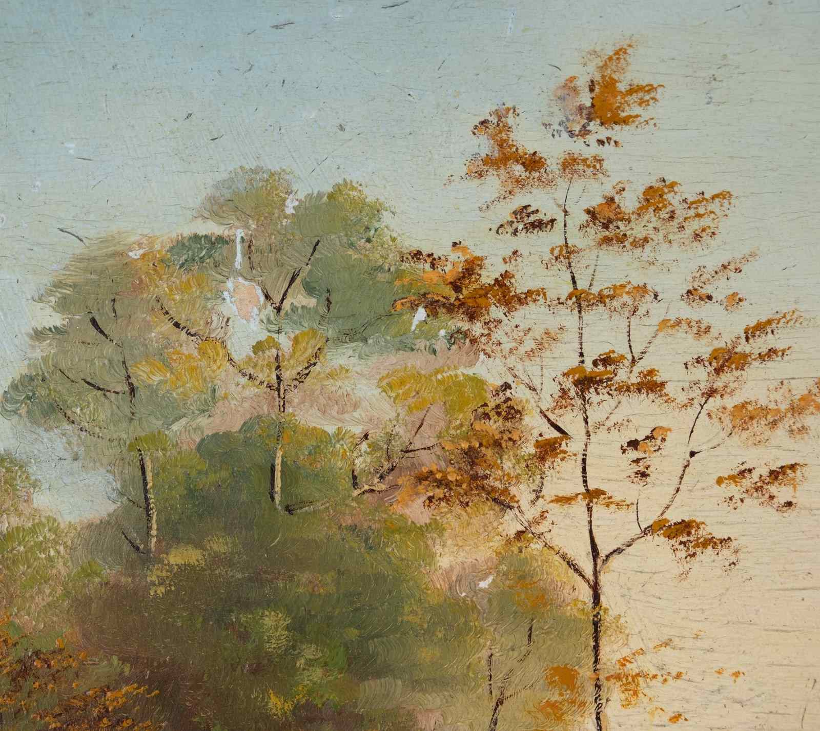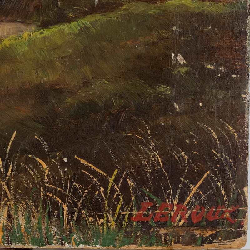 Gone Fishing - Antique French Oil On Board