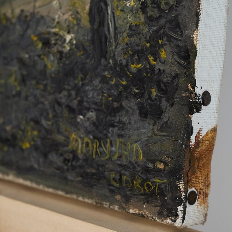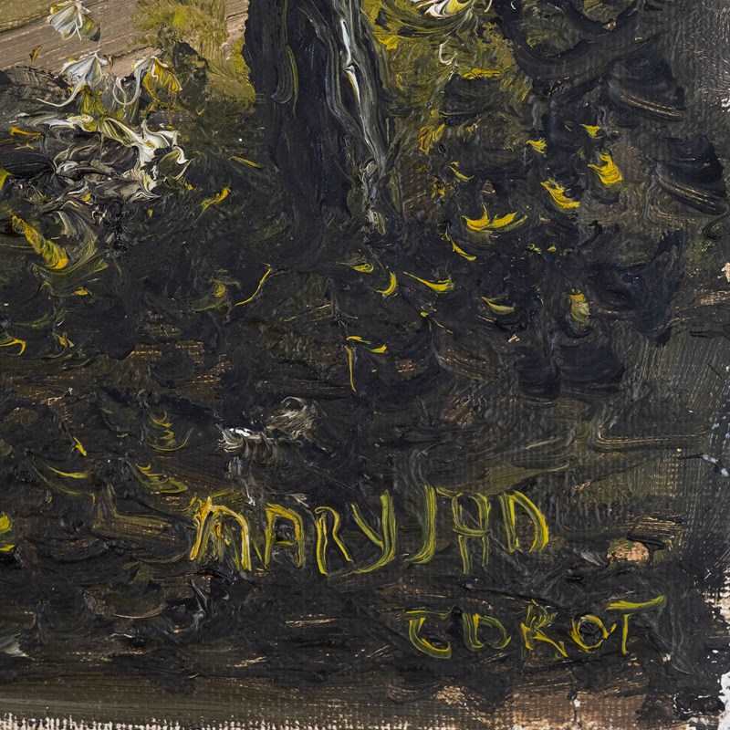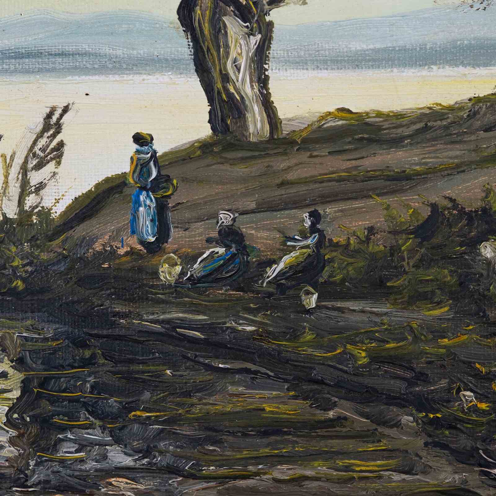 A charming small vintage French oil on canvas - three ladies taking a moment to enjoy the view?