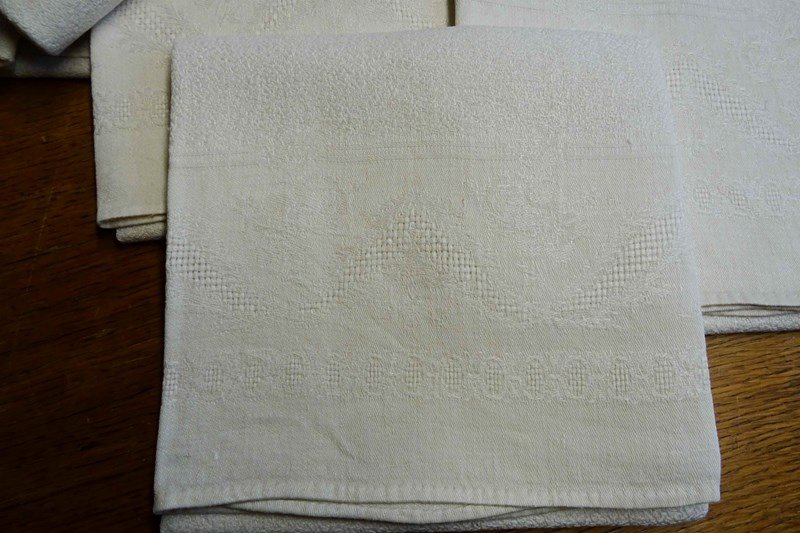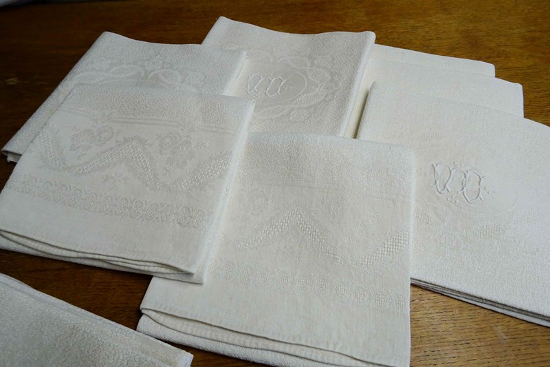 I have freshly laundered these and they're ready for use. As they are unused unbleached linen they are a pale creamy colour; some just a tiny bit lighter than others. This really barely noticeable and will even out as they continue to be laundered, it's just an interesting part of their history.
