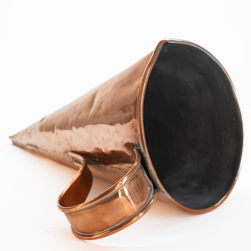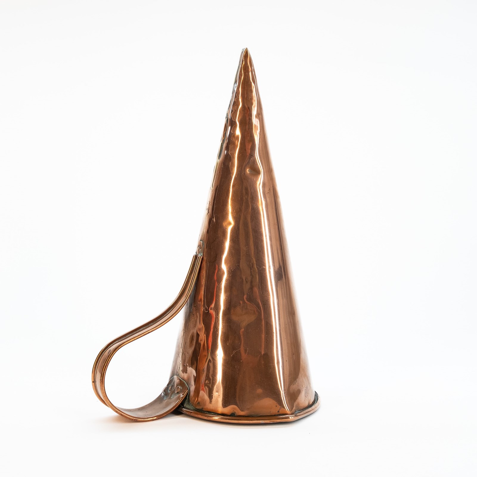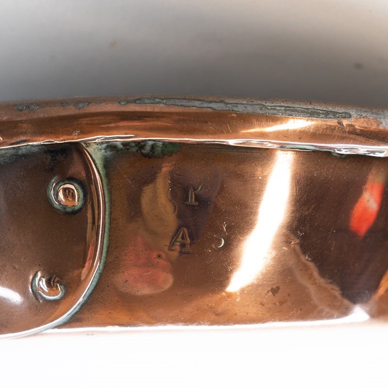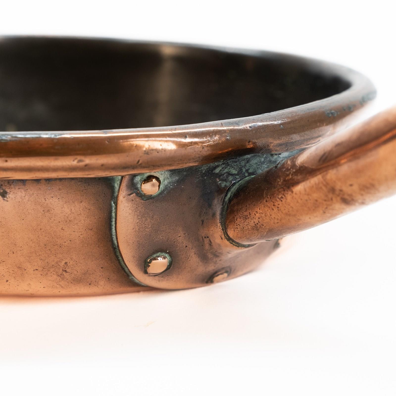 A 19th century ale muller and frying pan with 20th century copper and brass chestnut roaster.
