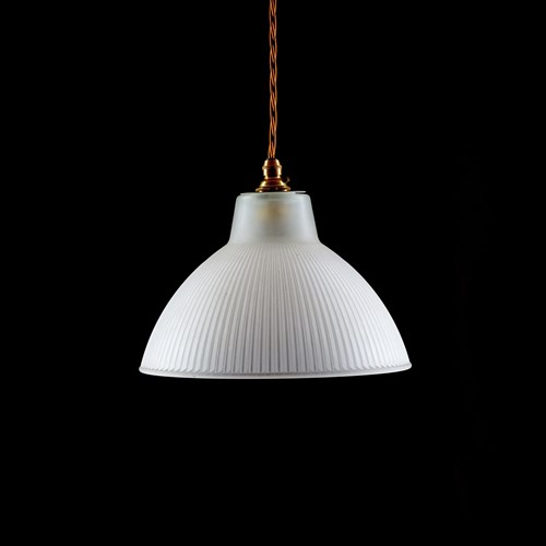 Traditional vintage French white/milk glass "coolie" shades - so very French! Supplied with new brass gallery, bayonet cap bulb holder and twisted silk flex in a soft gold colour as shown; ready to be fitted.
