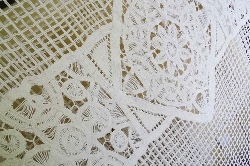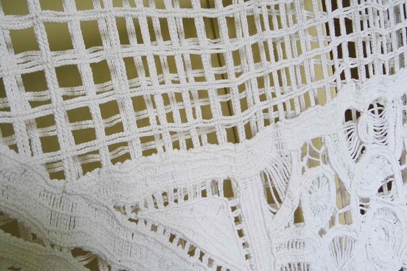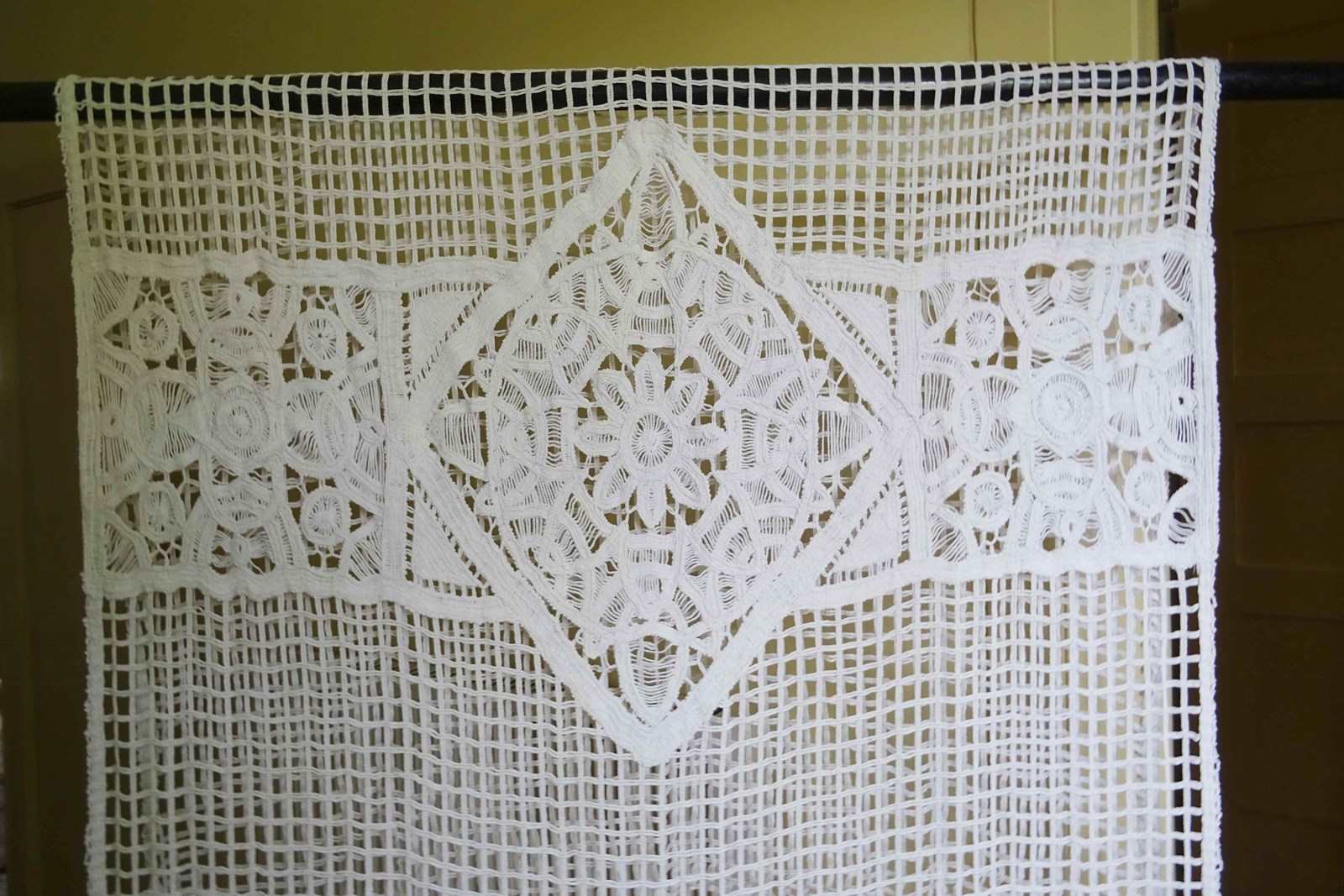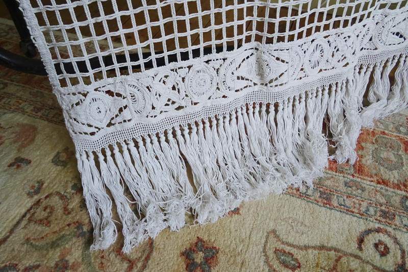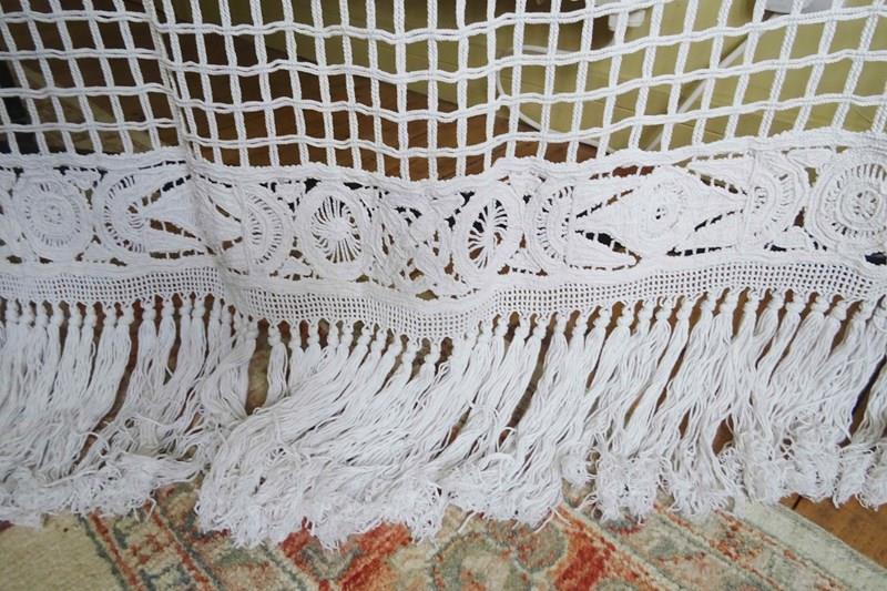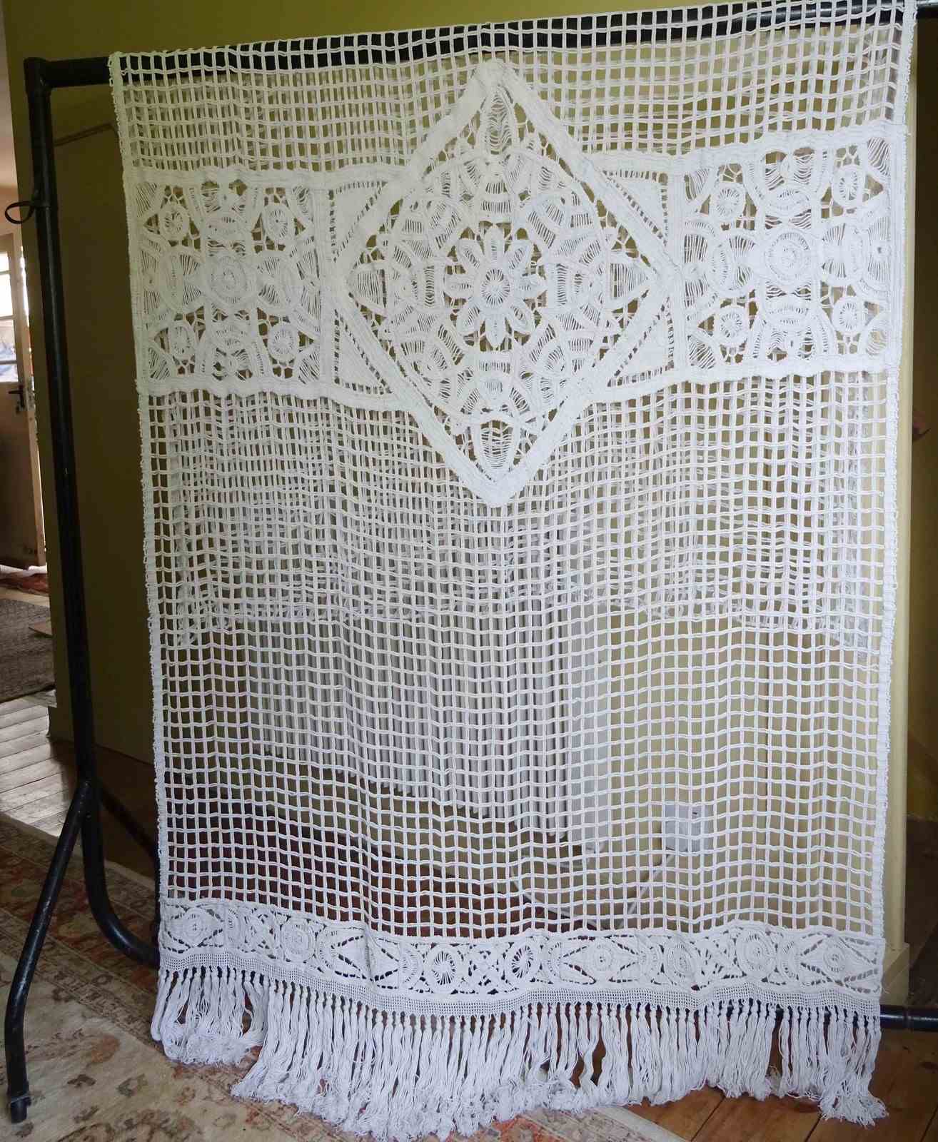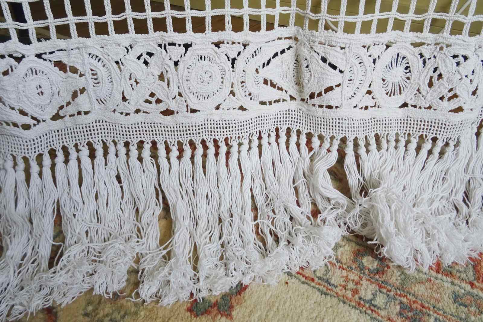 This is rather fabulous! A vintage French open work curtain with lovely long tassels at the base.