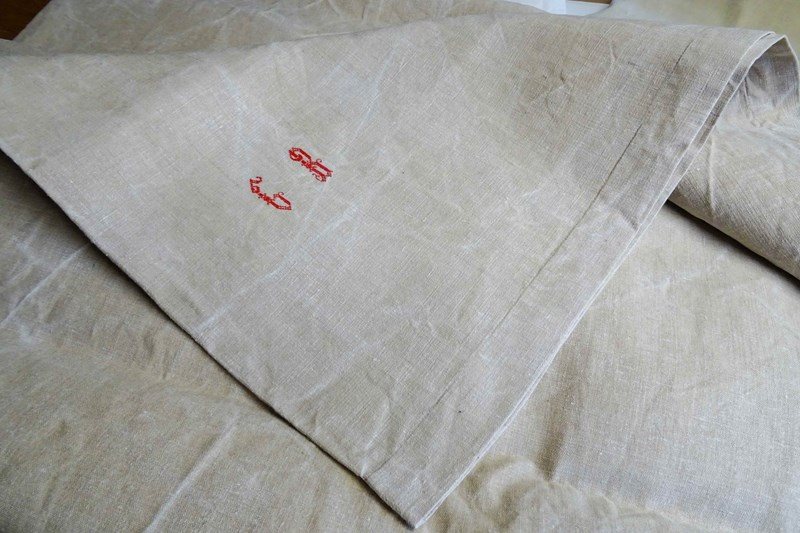 It has simple machined hems and a finely worked monogram of the letters GB in red thread and set to one side of the seam. A traditional and charming piece of French textile history; these are really a privilege to own and use.