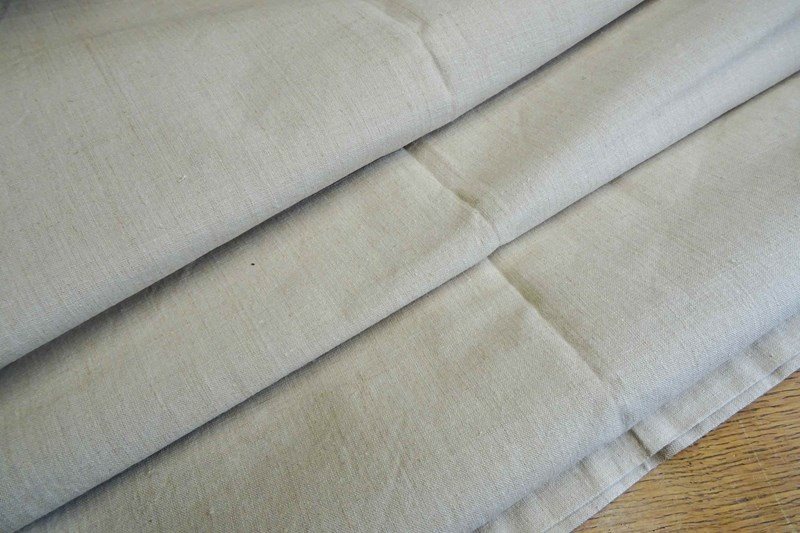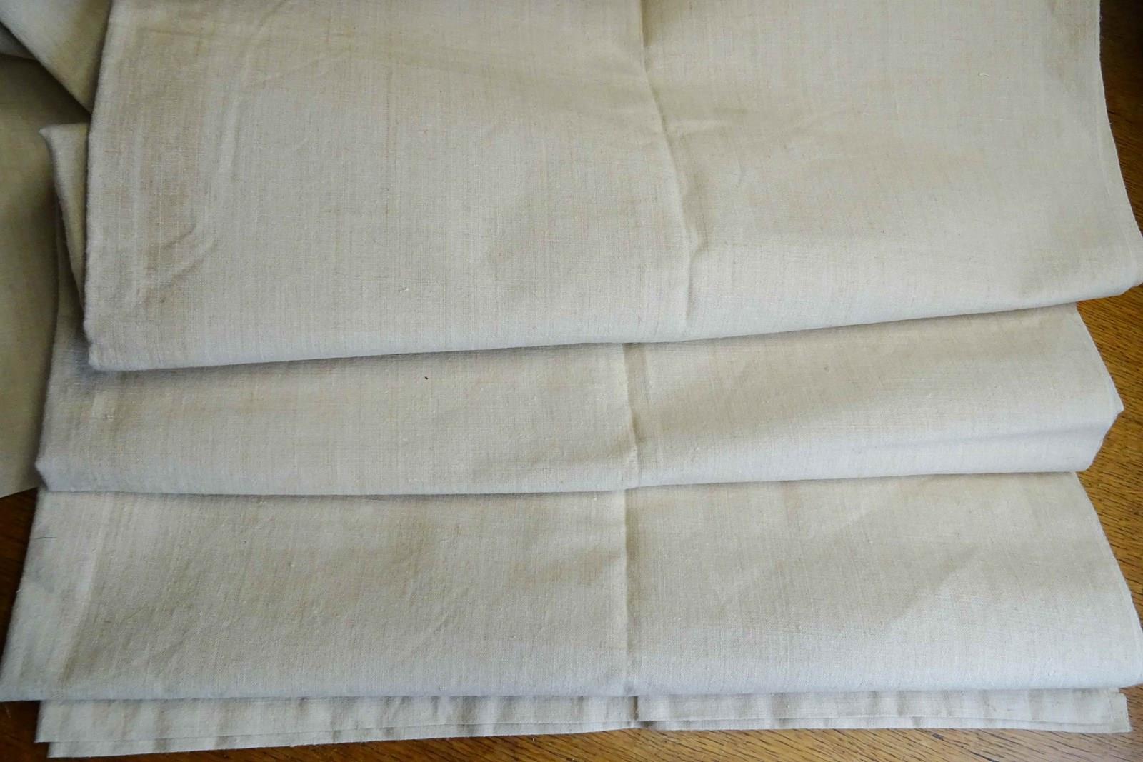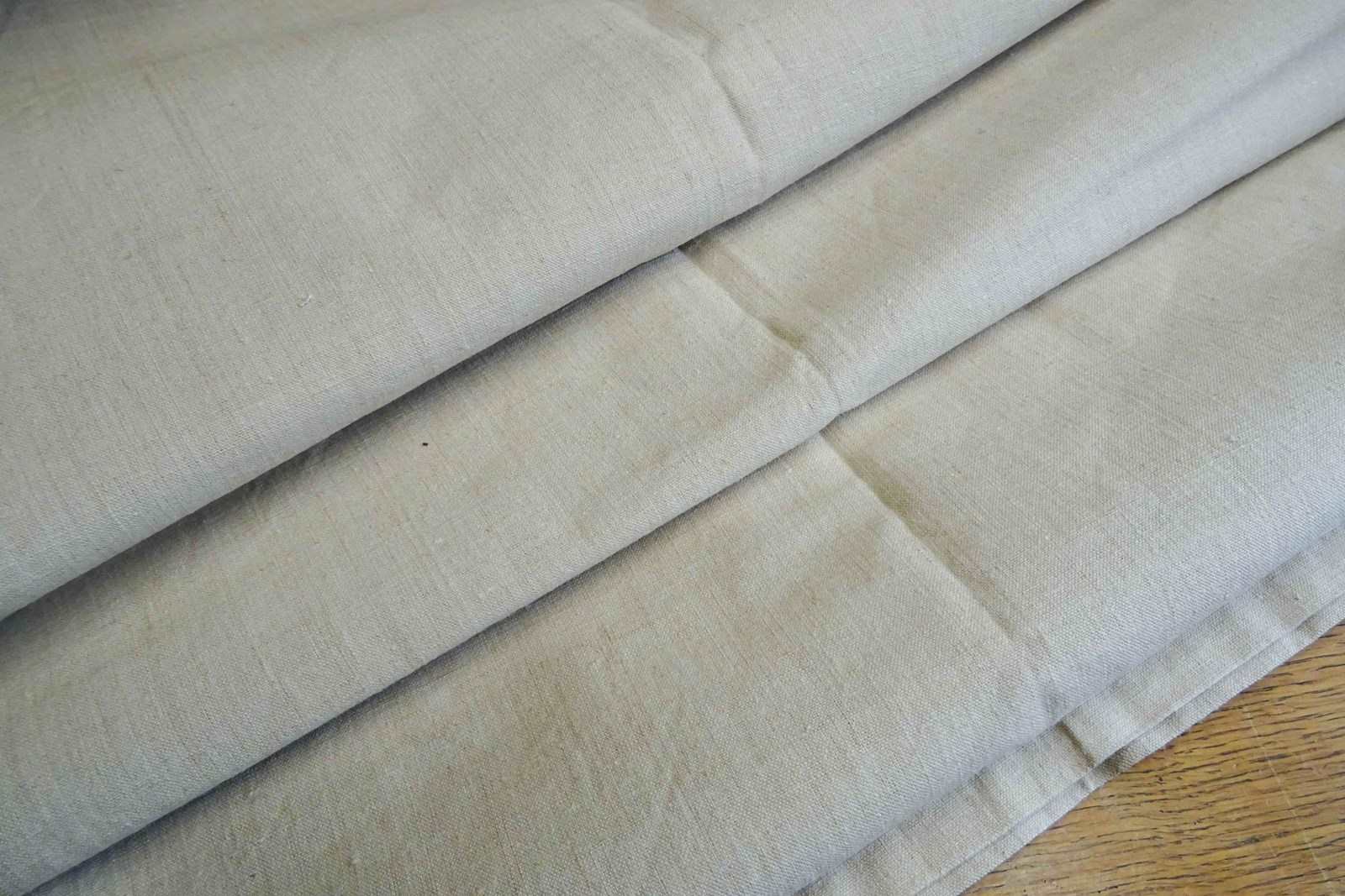 Huge piece of unused early 20th century French heavy linen sheeting fabric. This is amazing heavy, sturdy stuff - yes, it was originally intended to be used on a bed but really this will come into its own to use for upholstery, blinds or curtains. This is very sturdy stuff and will need a good soak and laundering to soften up but it will leave you with some great fabric. Hard to tell if it is a pure or a linen metis.
