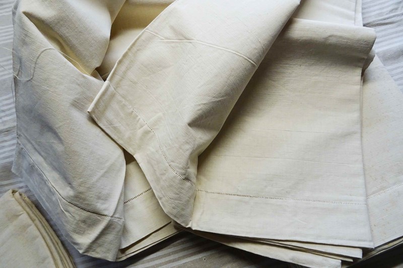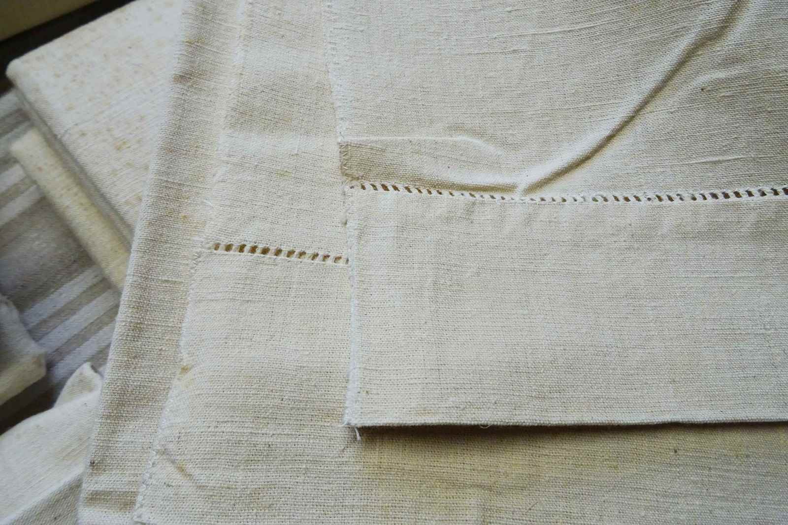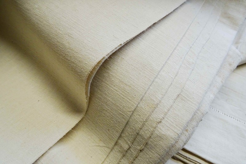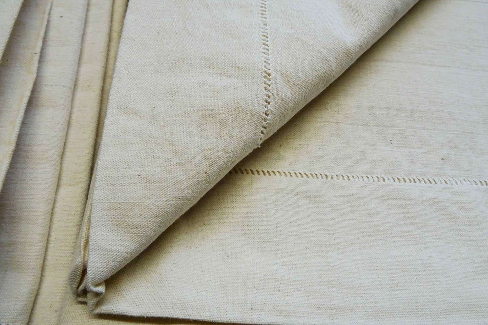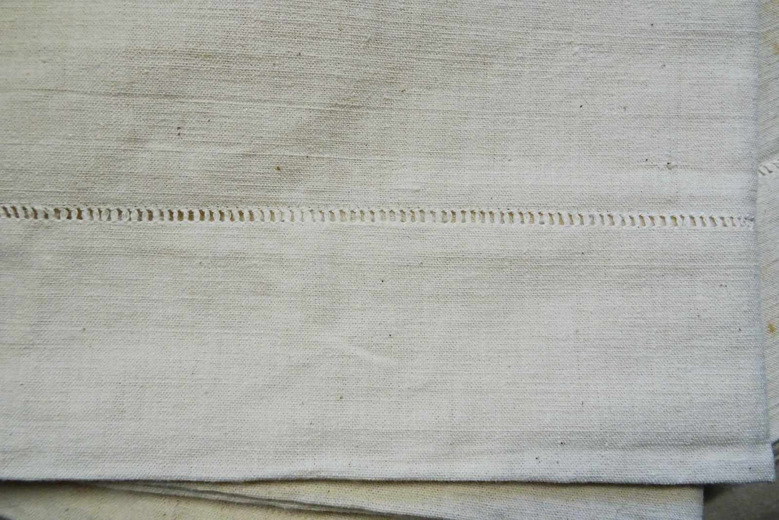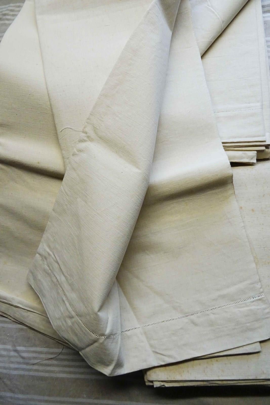 These are all totally unused, unbleached, never laundered "dead stock" pieces which will need a soak and a few washes to fully soften up but will give you masses of excellent quality fabric for your bed or your projects. Colour is a pale cream which will lighten with washing to a pale oatmeal/off white. Don't worry, I will send washing instructions with purchase.