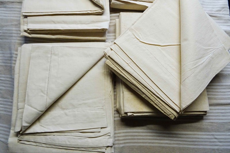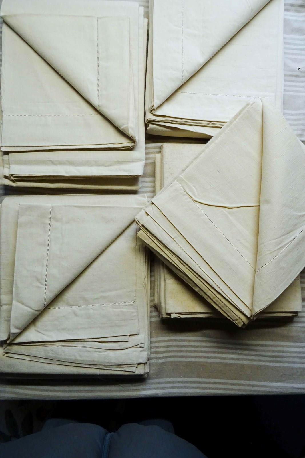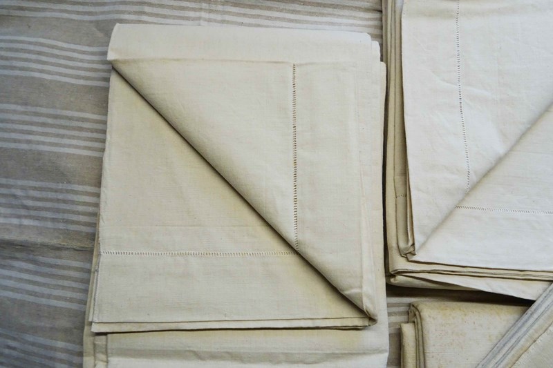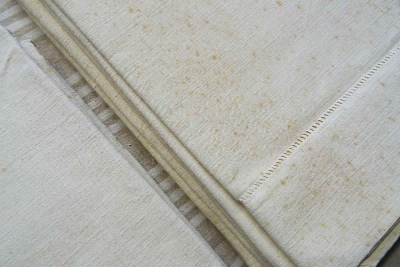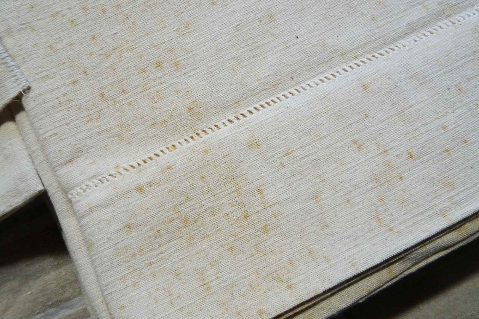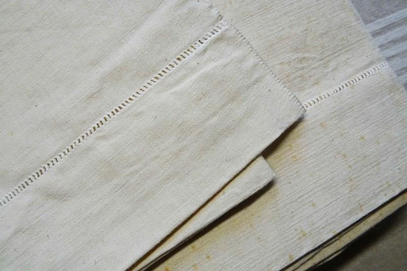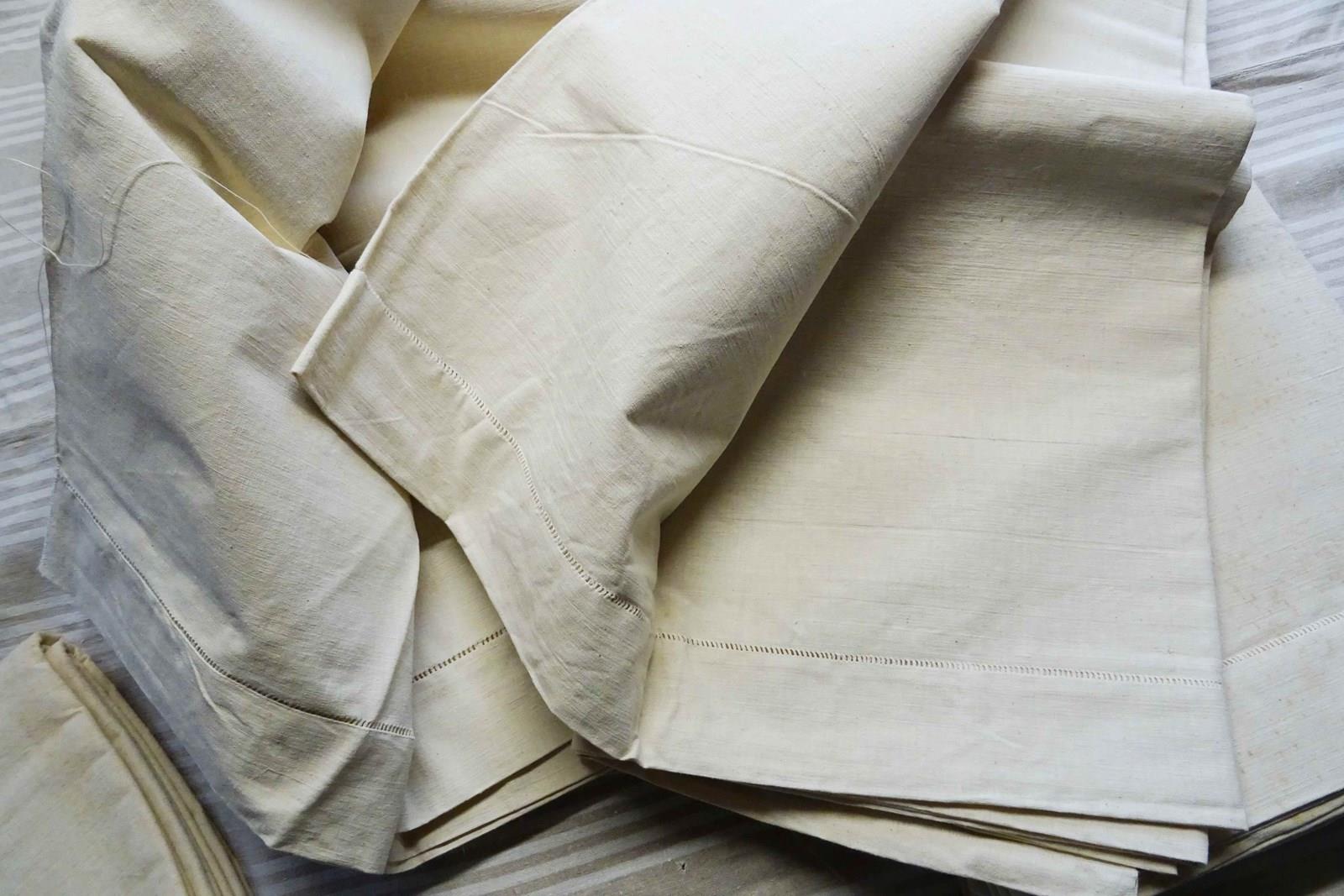 These are all totally unused, unbleached, never laundered "dead stock" pieces which will need a soak and a few washes to fully soften up but will give you masses of excellent quality fabric for your bed or your projects. Colour is a pale cream which will lighten with washing to a pale oatmeal/off white. Don't worry, I will send washing instructions with purchase.