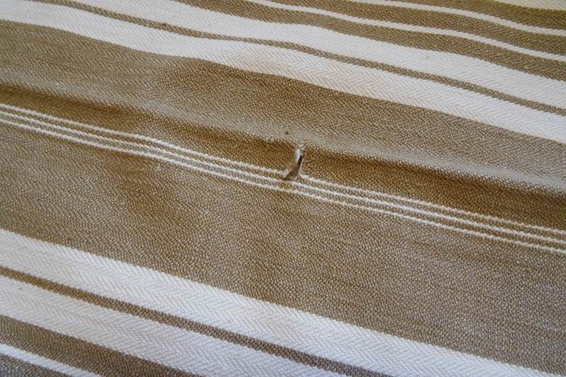 This is a used piece but it's in generally very good condition; the usual nicks from the tufting and just a few small areas of marks and a couple of tiny rips. Lots of good sturdy fabric for your projects. Full width from selvedge to selvedge.