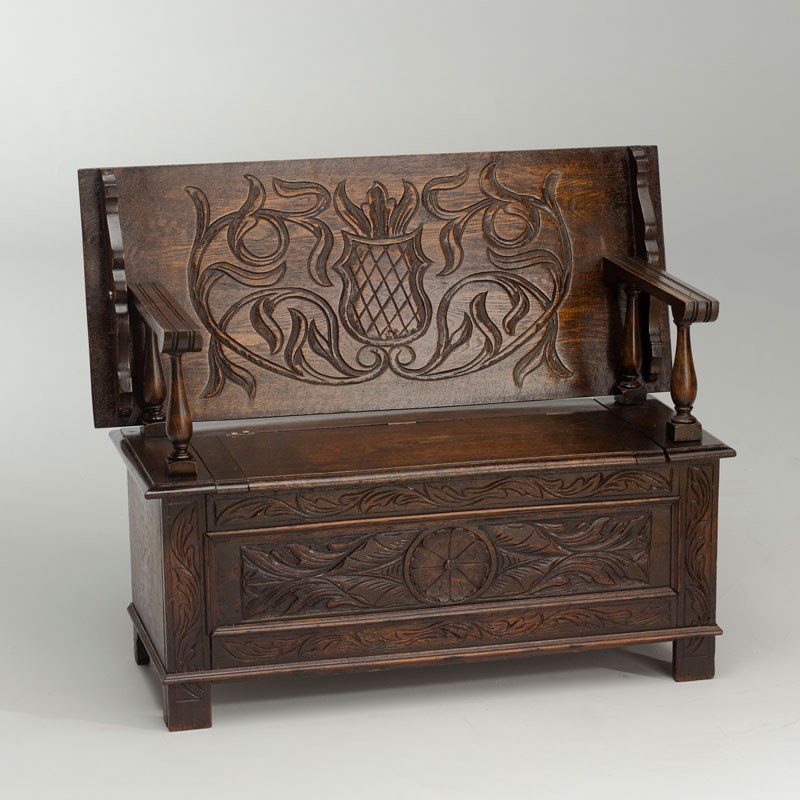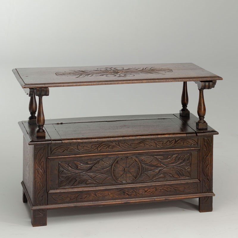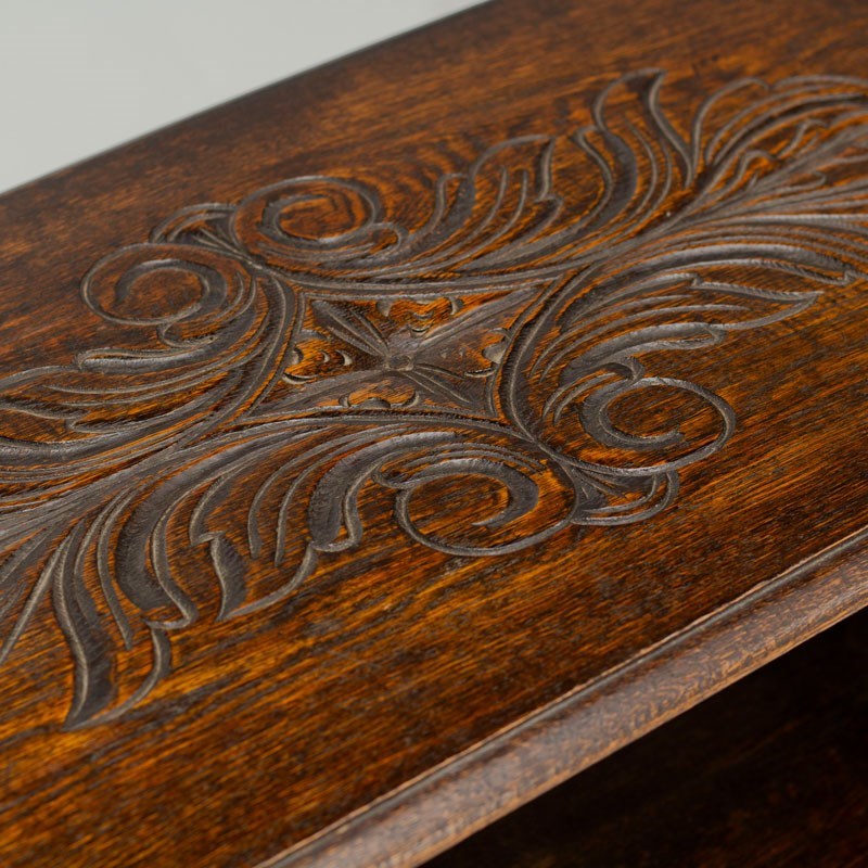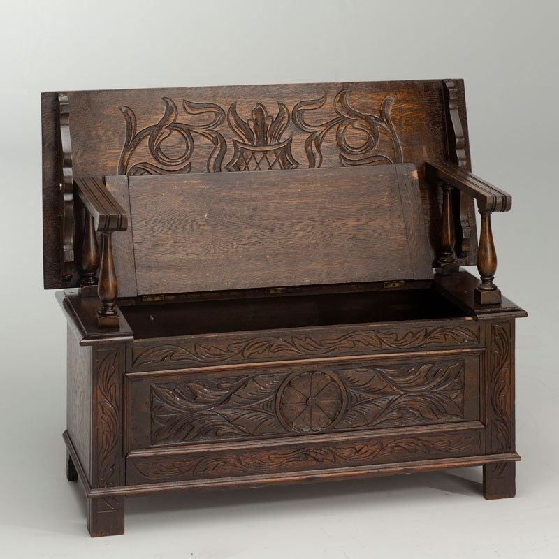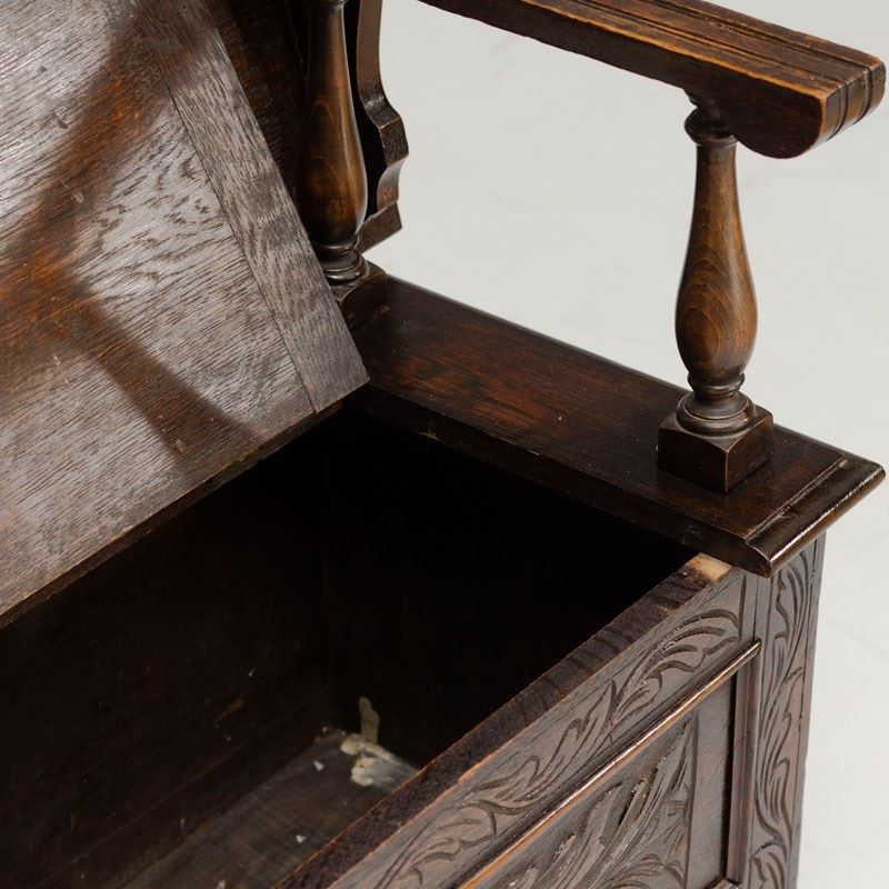 Carved Oak Monk's Bench