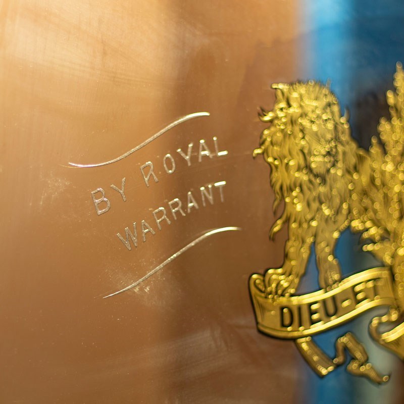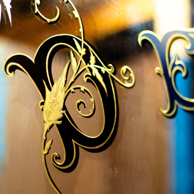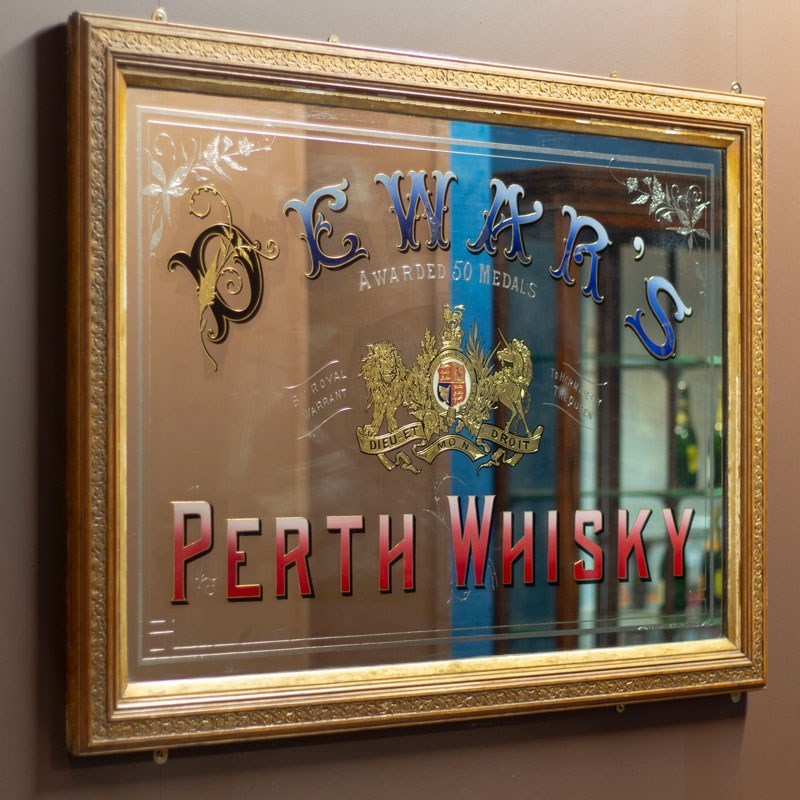 Reverse etched with impressive gold leaf detailing. Dewar's Perth Whisky