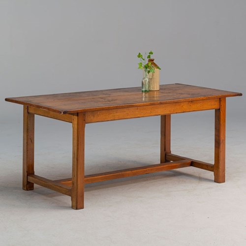 Early 1900's Factory table in pitch pine with original iron strengthening bars. Heavy and solid piece with history andpatina.