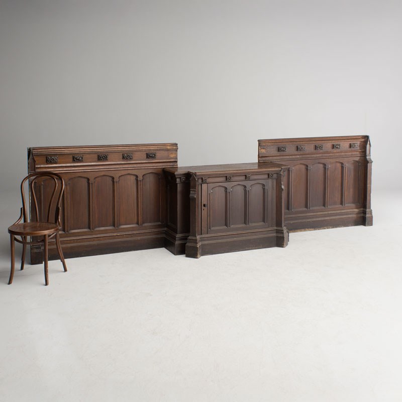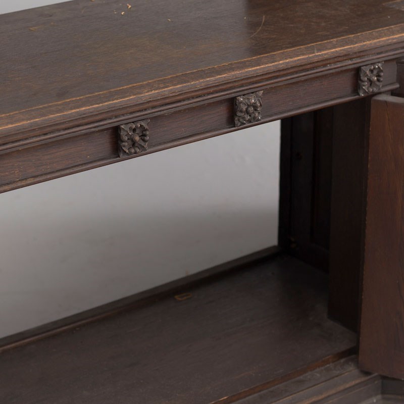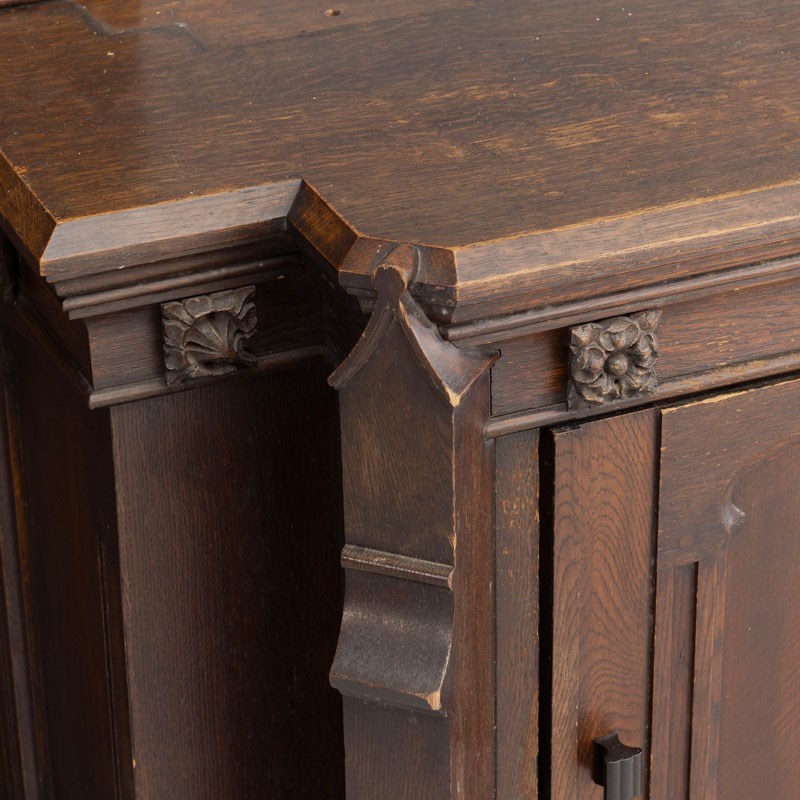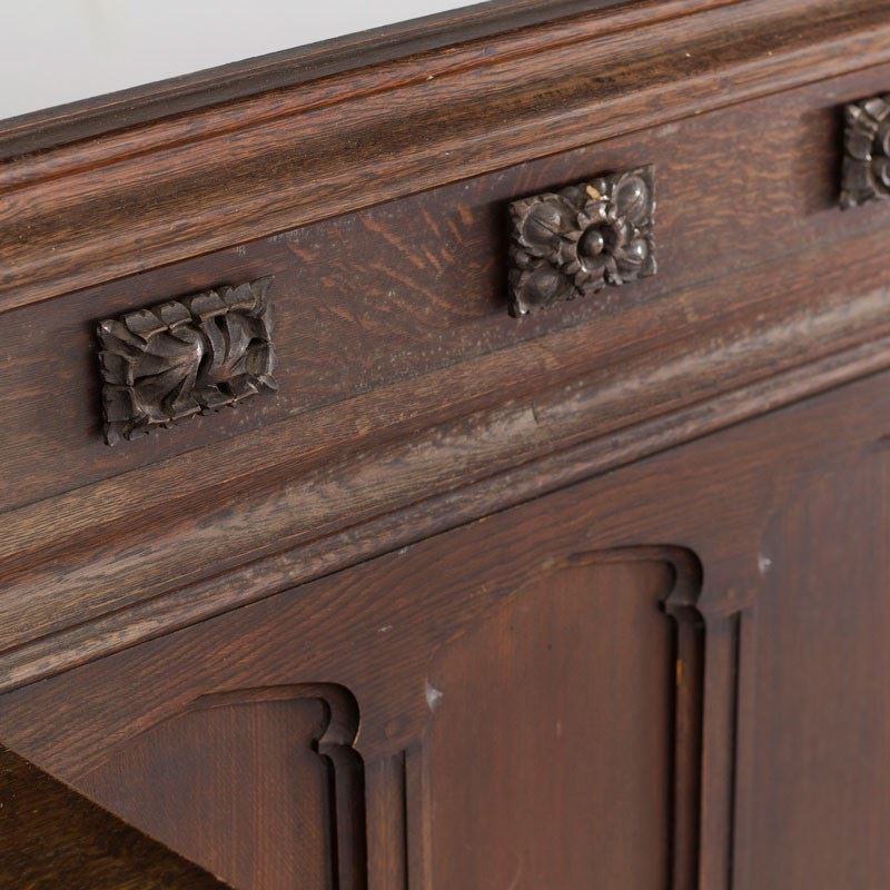 Early 20th century gothic church frontage in oak with central cupboard.