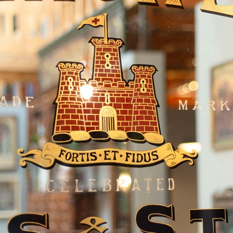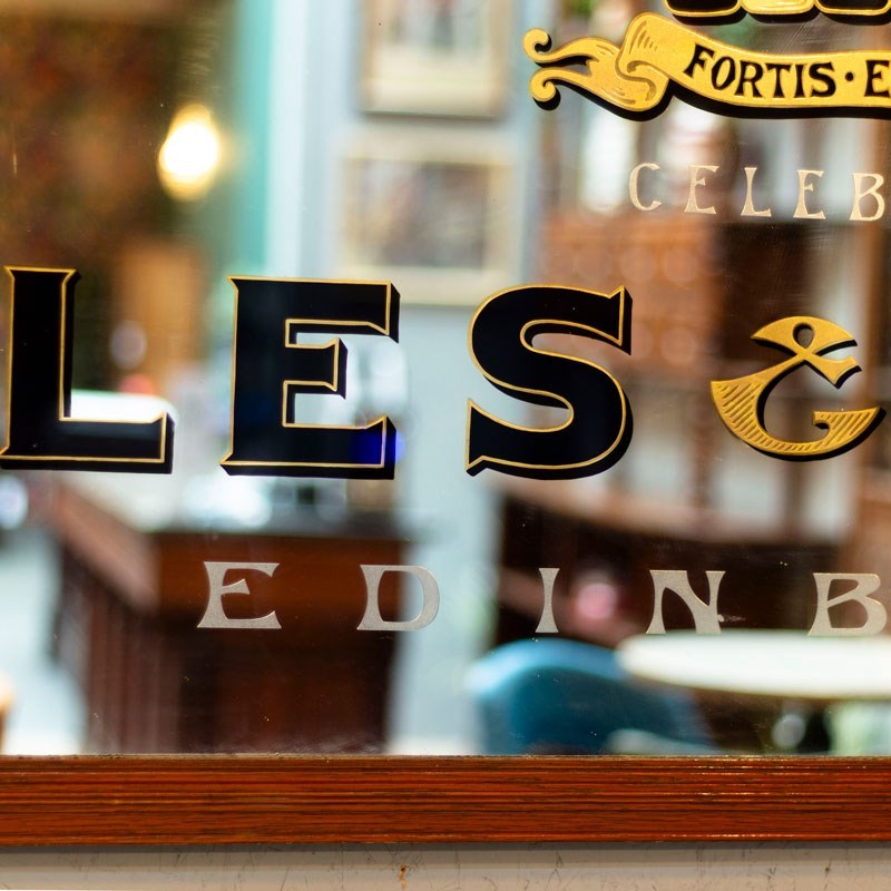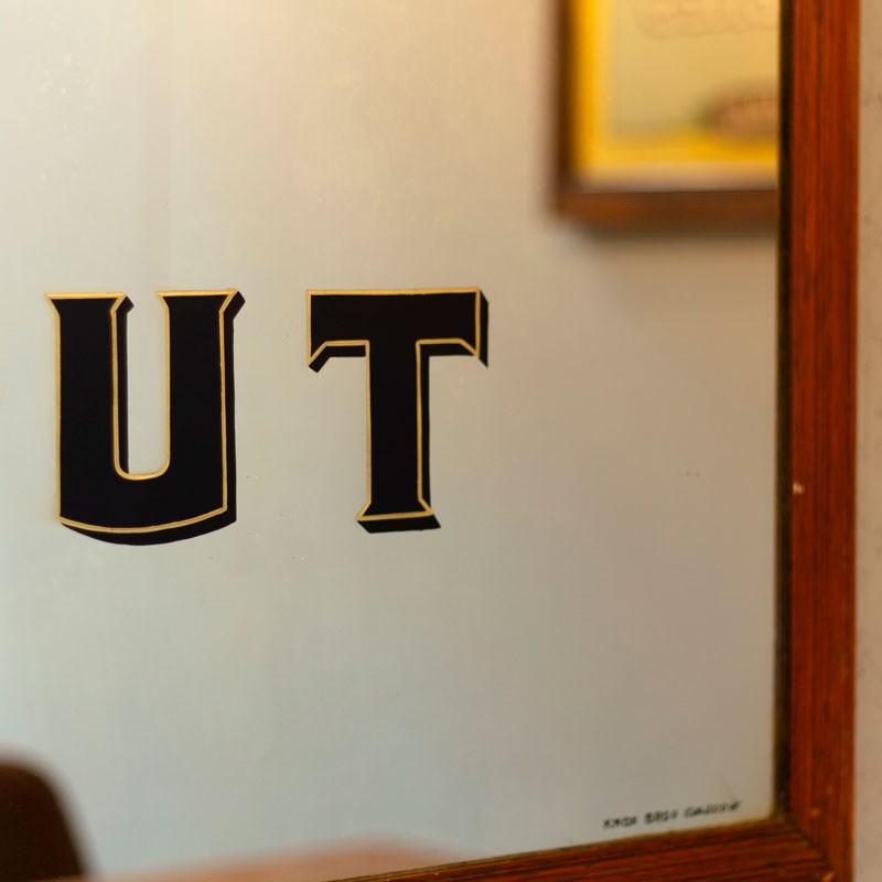 Machlachlan's pub mirror with reverse etched and gold leaf detailing by Knox Bros of Glasgow.