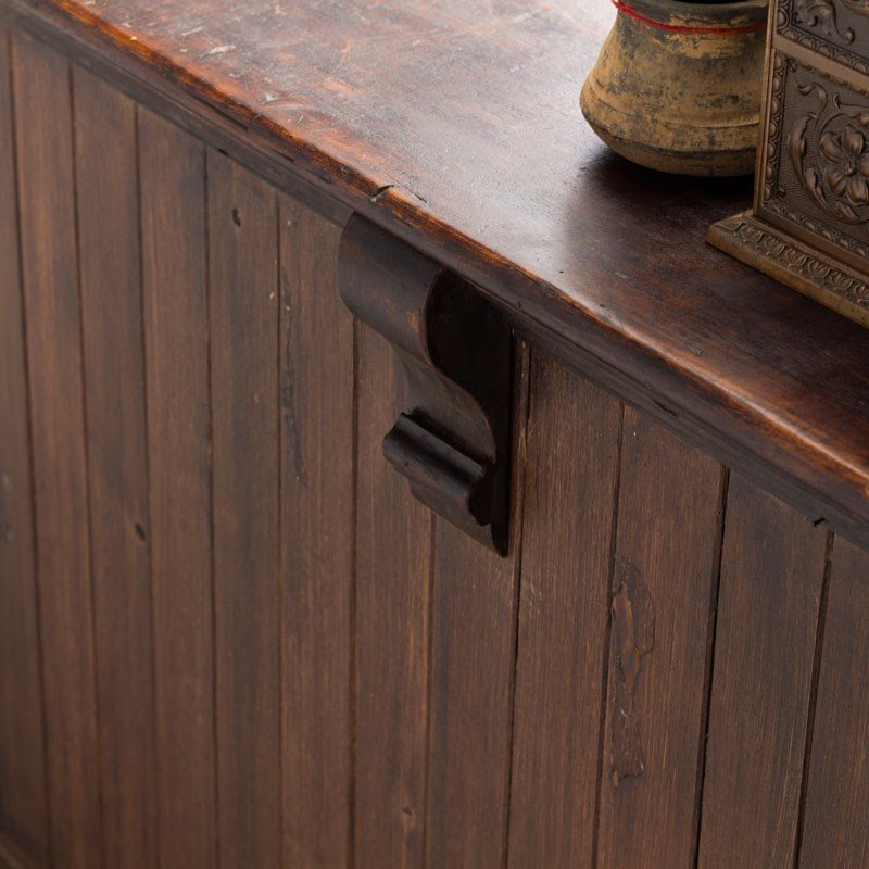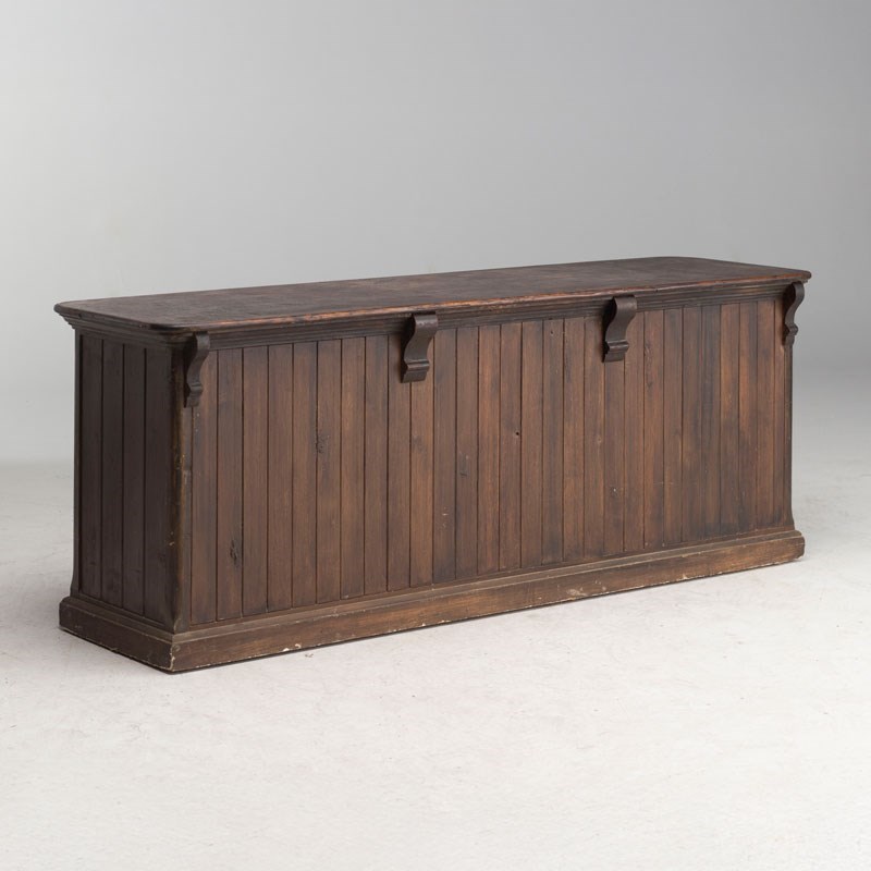 Lovely original draper's counter with tongue and groove frontage and corbels to the top.