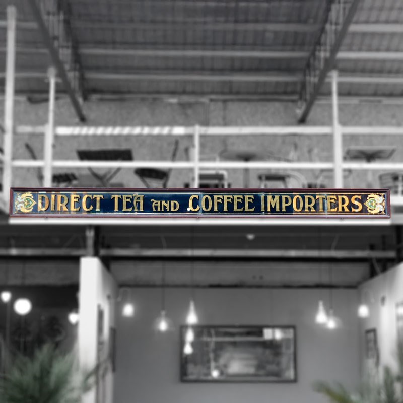 Victorian reverse etched Direct Tea and Coffee Importers Glazed Shop Sign
