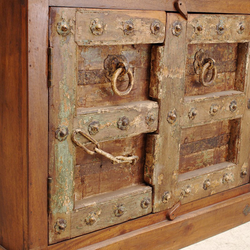 Wooden sideboard, this piece is manufactured incorporating original architectural elements from Northern India.