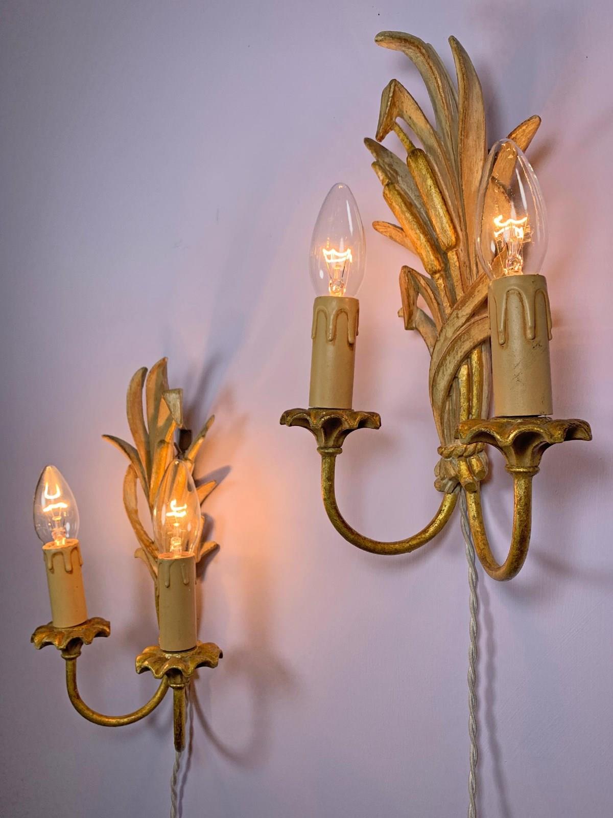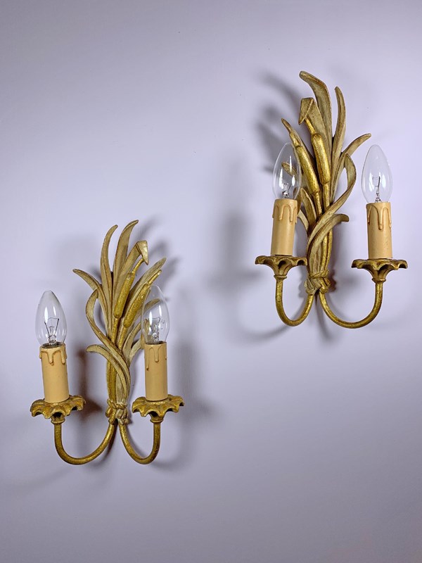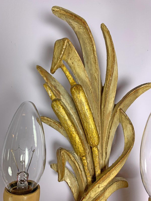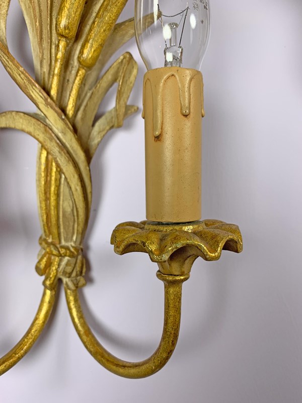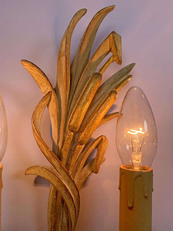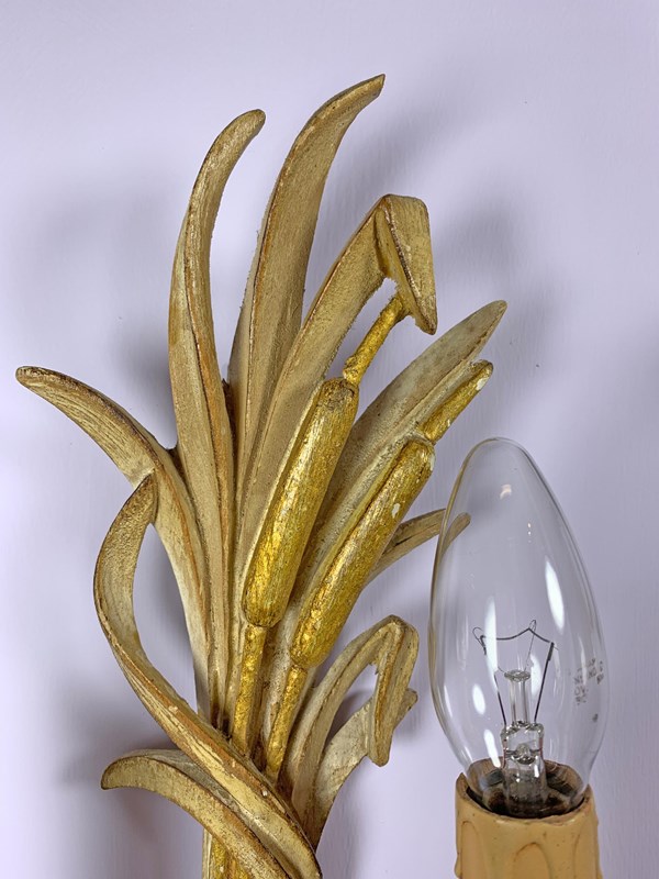 Italian Wooden Bulrush Wall Lights with Gilt Detail