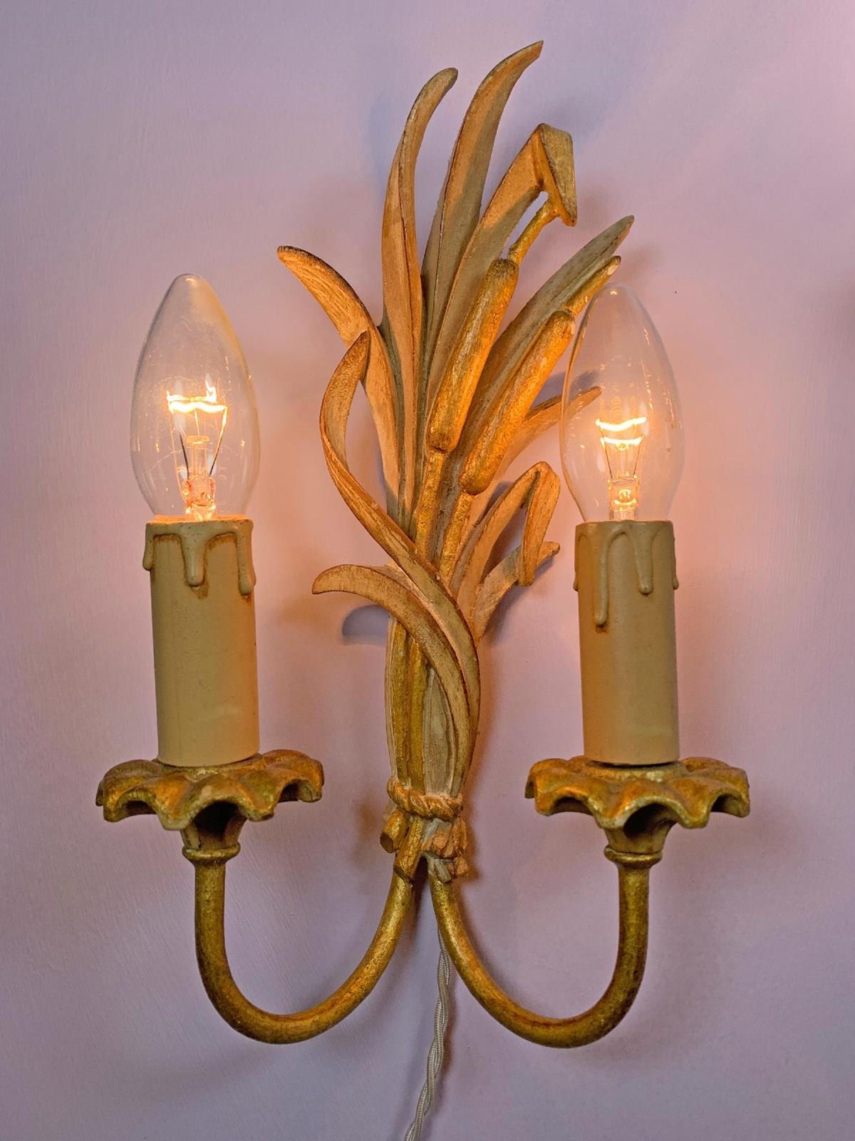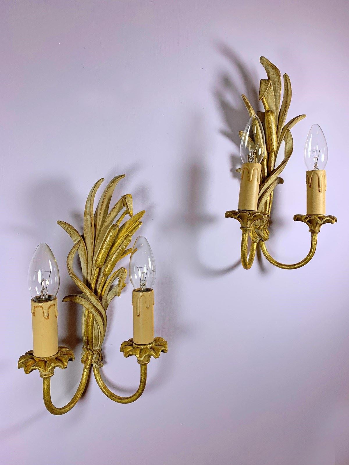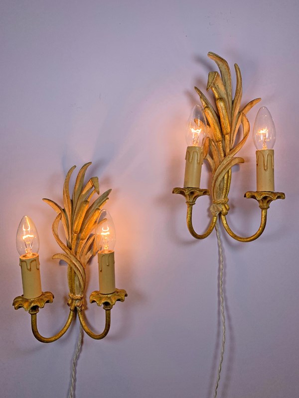 Italian Wooden Bulrush Wall Lights with Gilt Detail