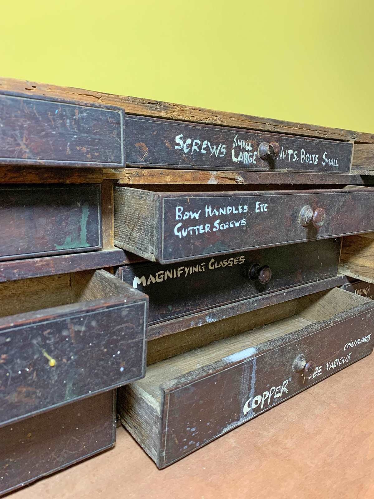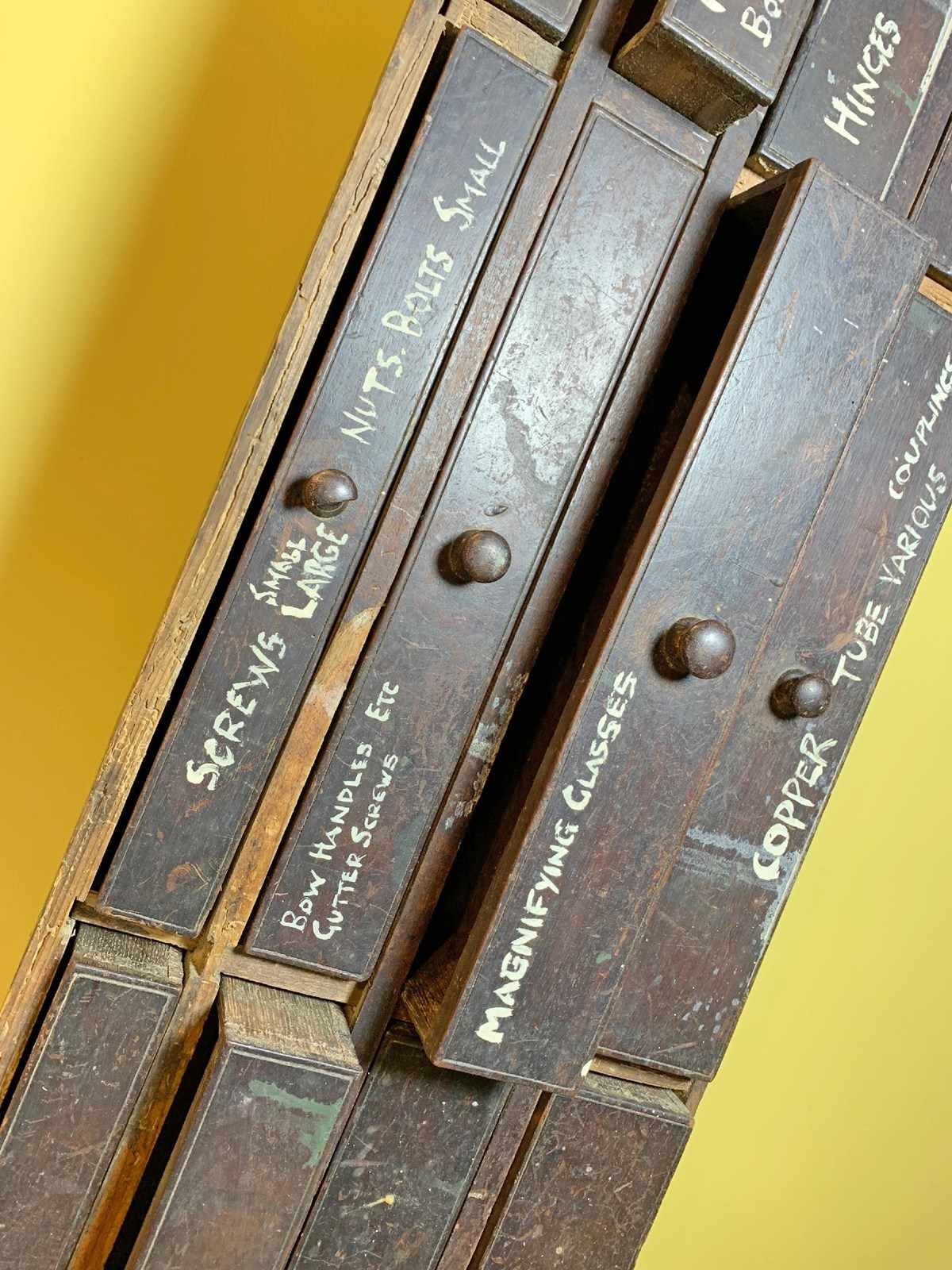 Bank of Wooden Workshop Drawers