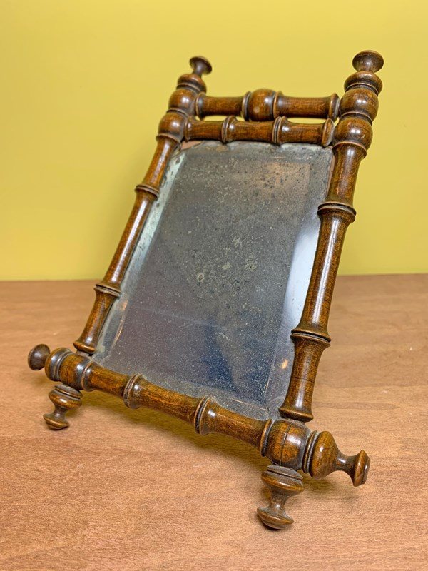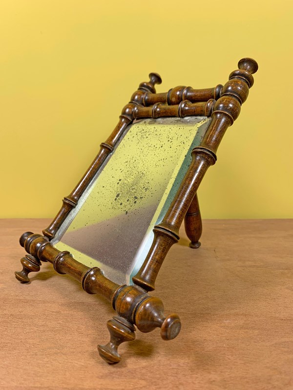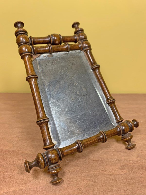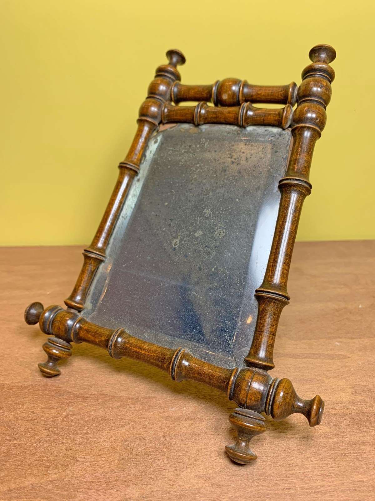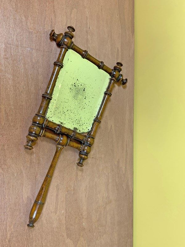 Small Georgian Faux Bamboo Fruitwood Travelling / Shaving Mirror