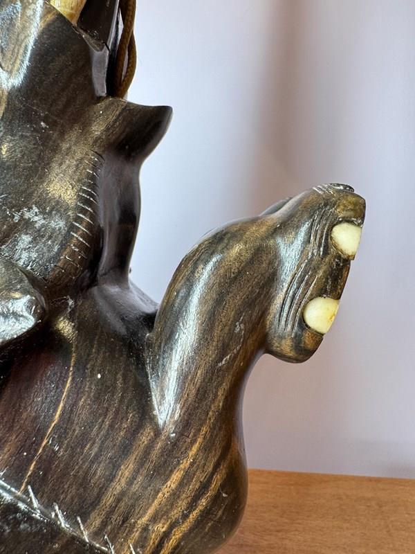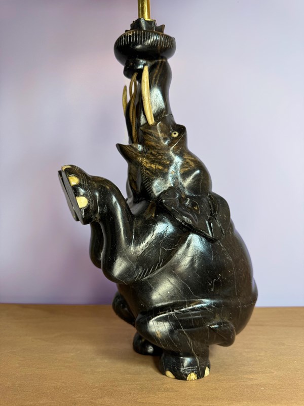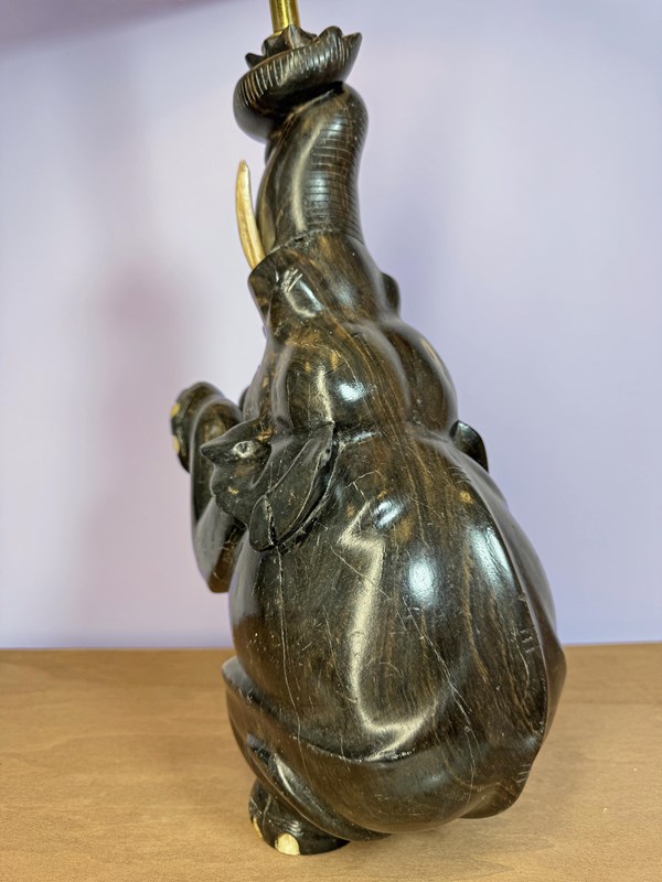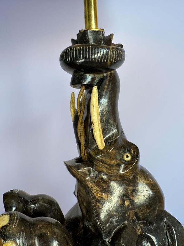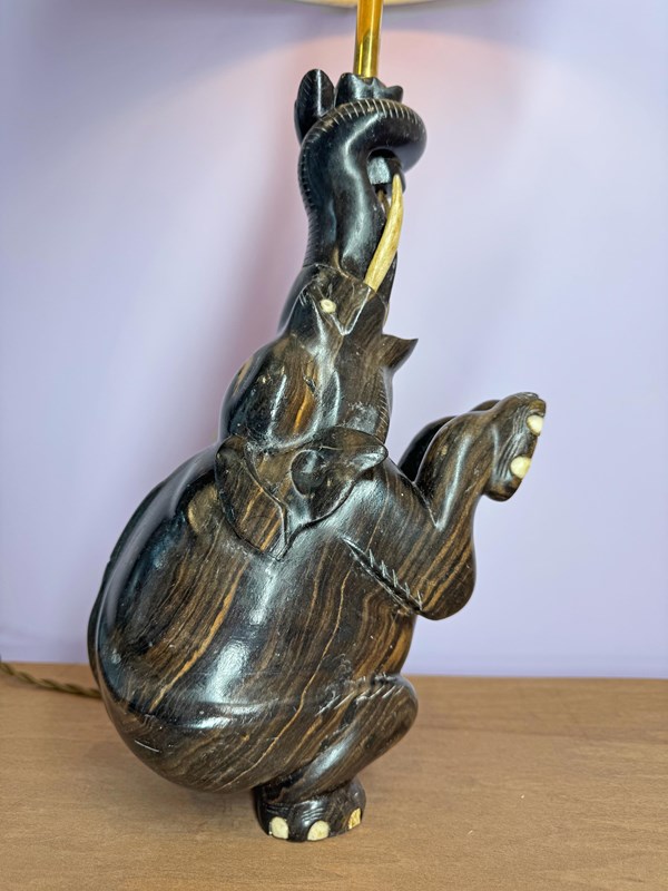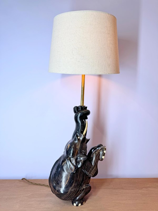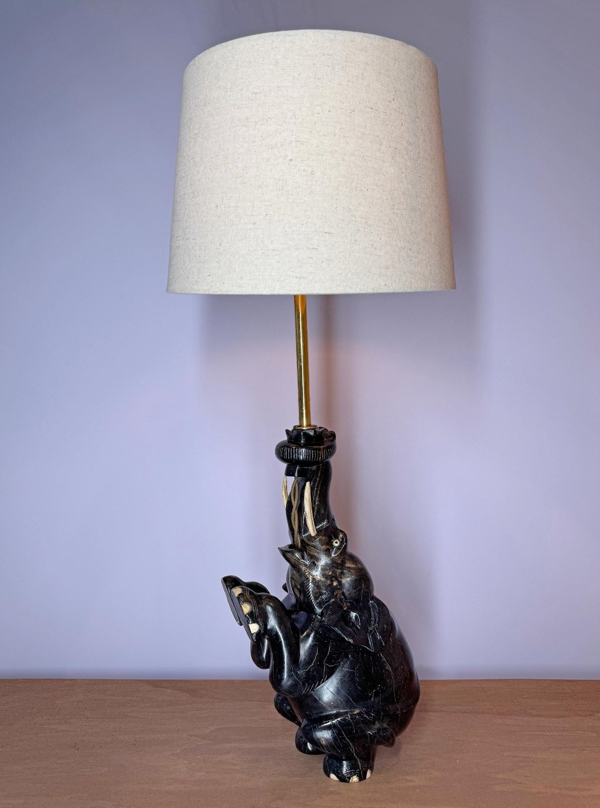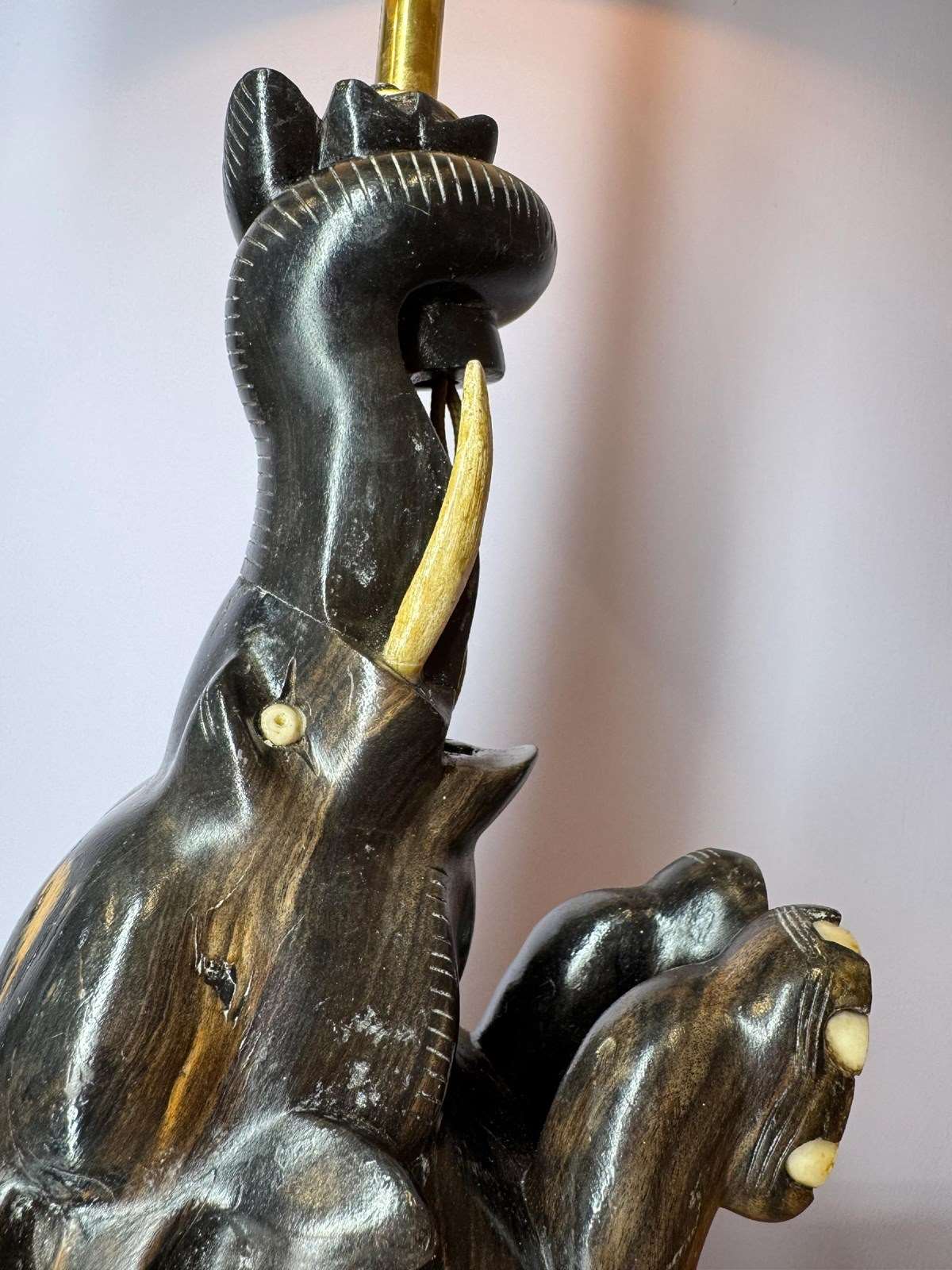 Hand Carved Ebony Elephant Table Lamp 1950'S