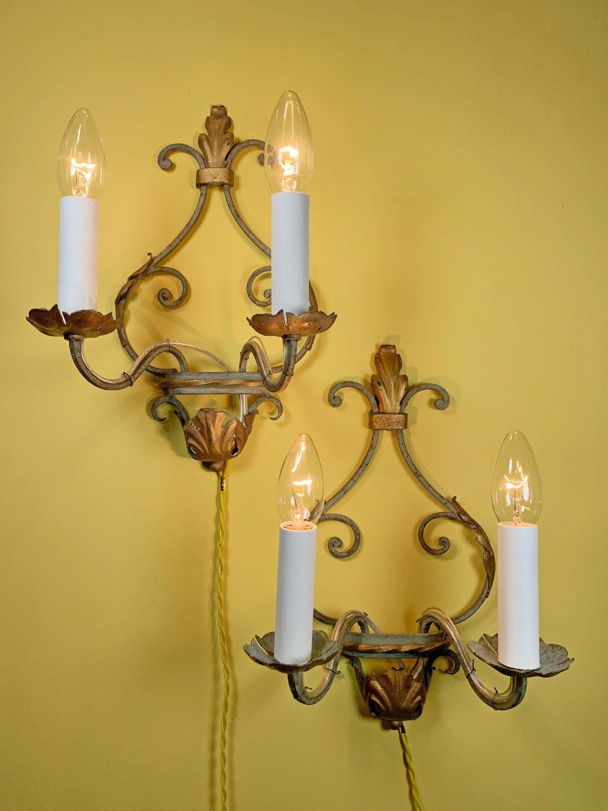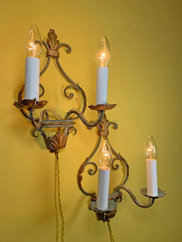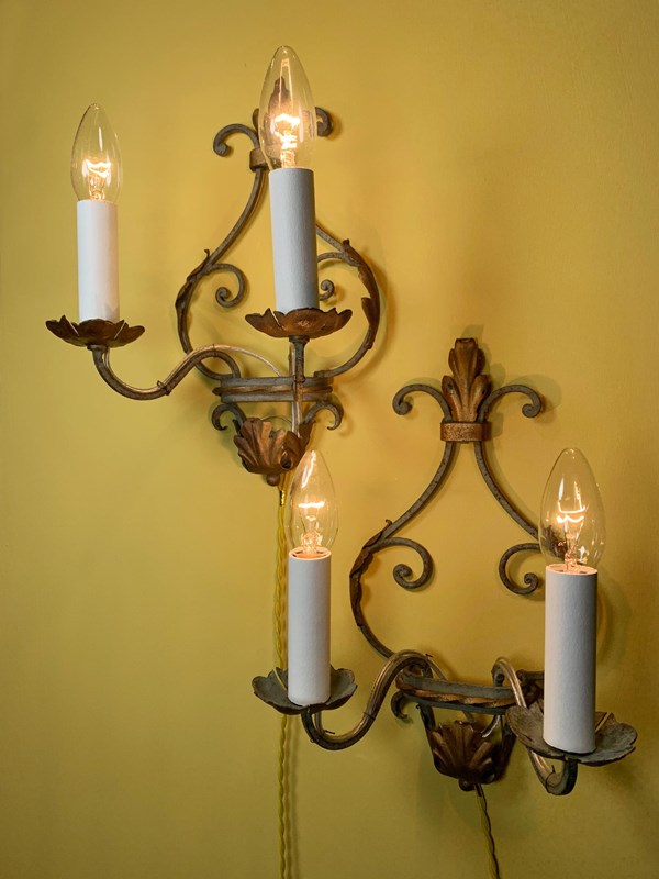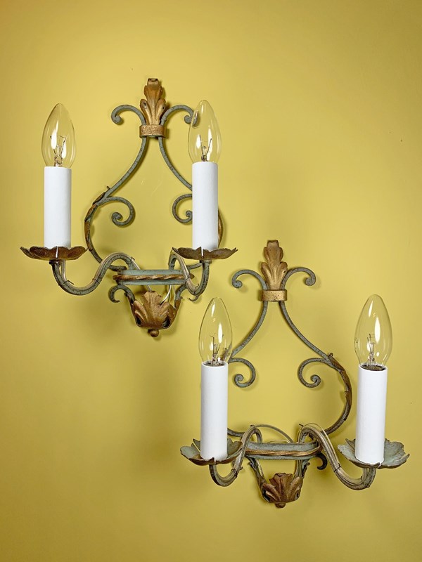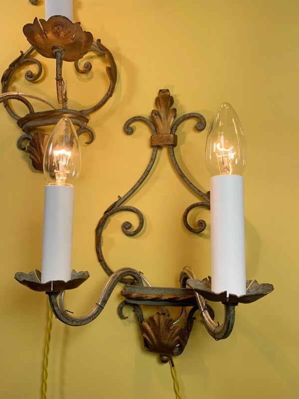 Antique Italian Painted Iron Wall Lights