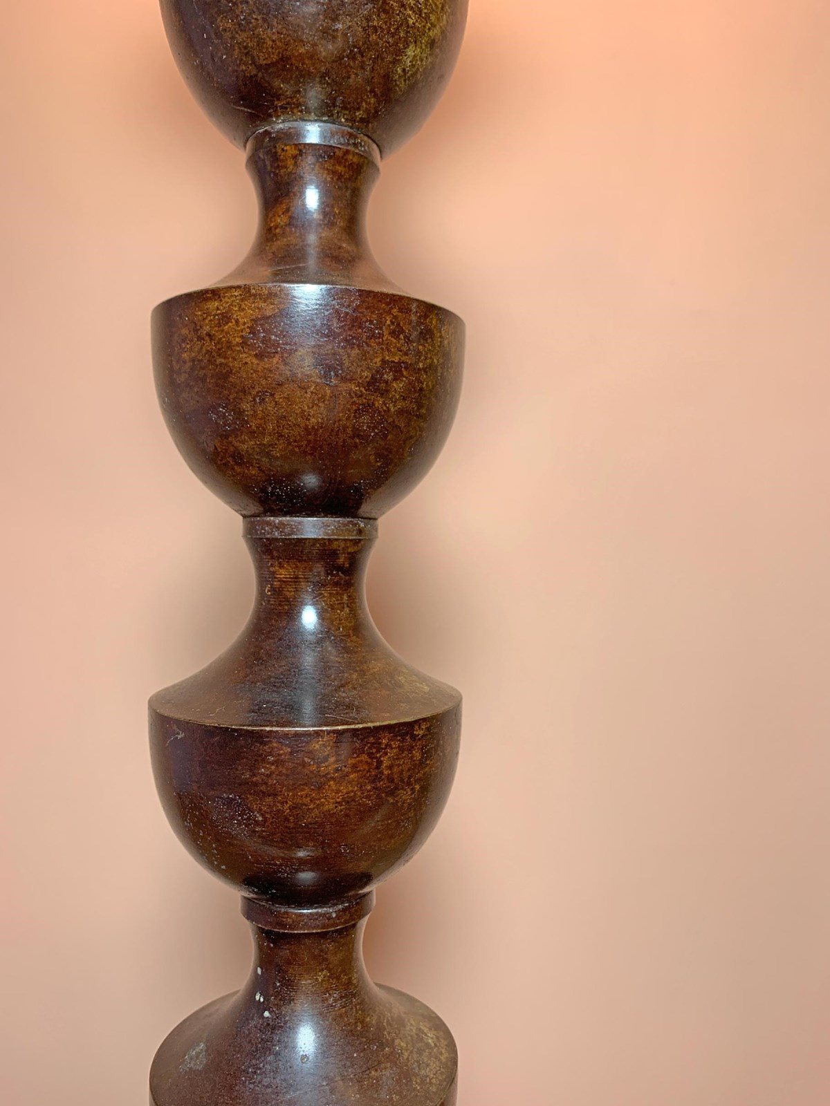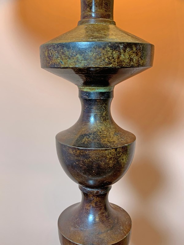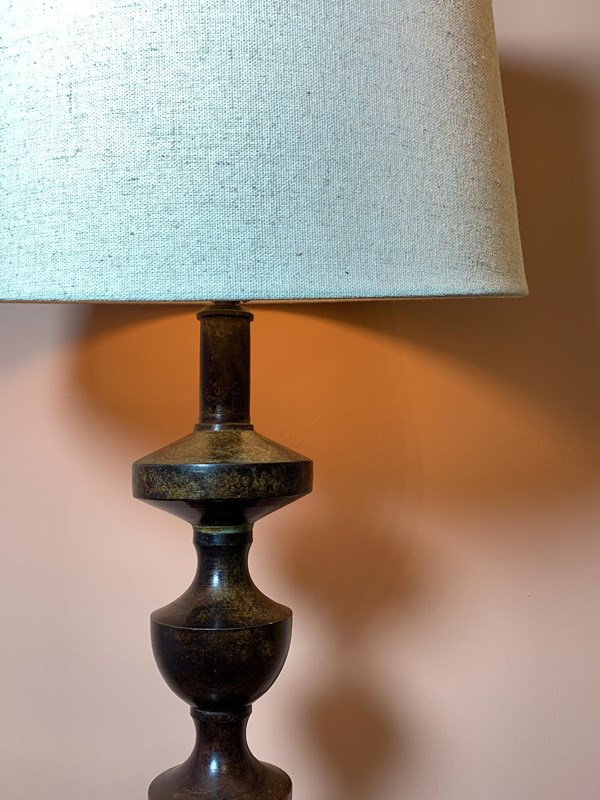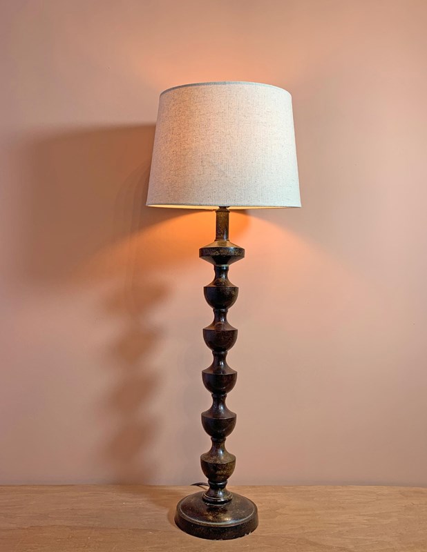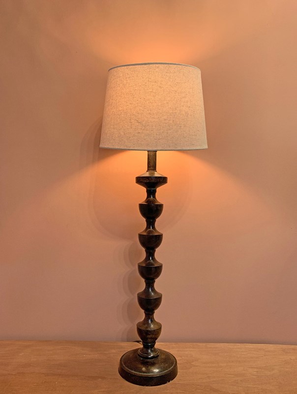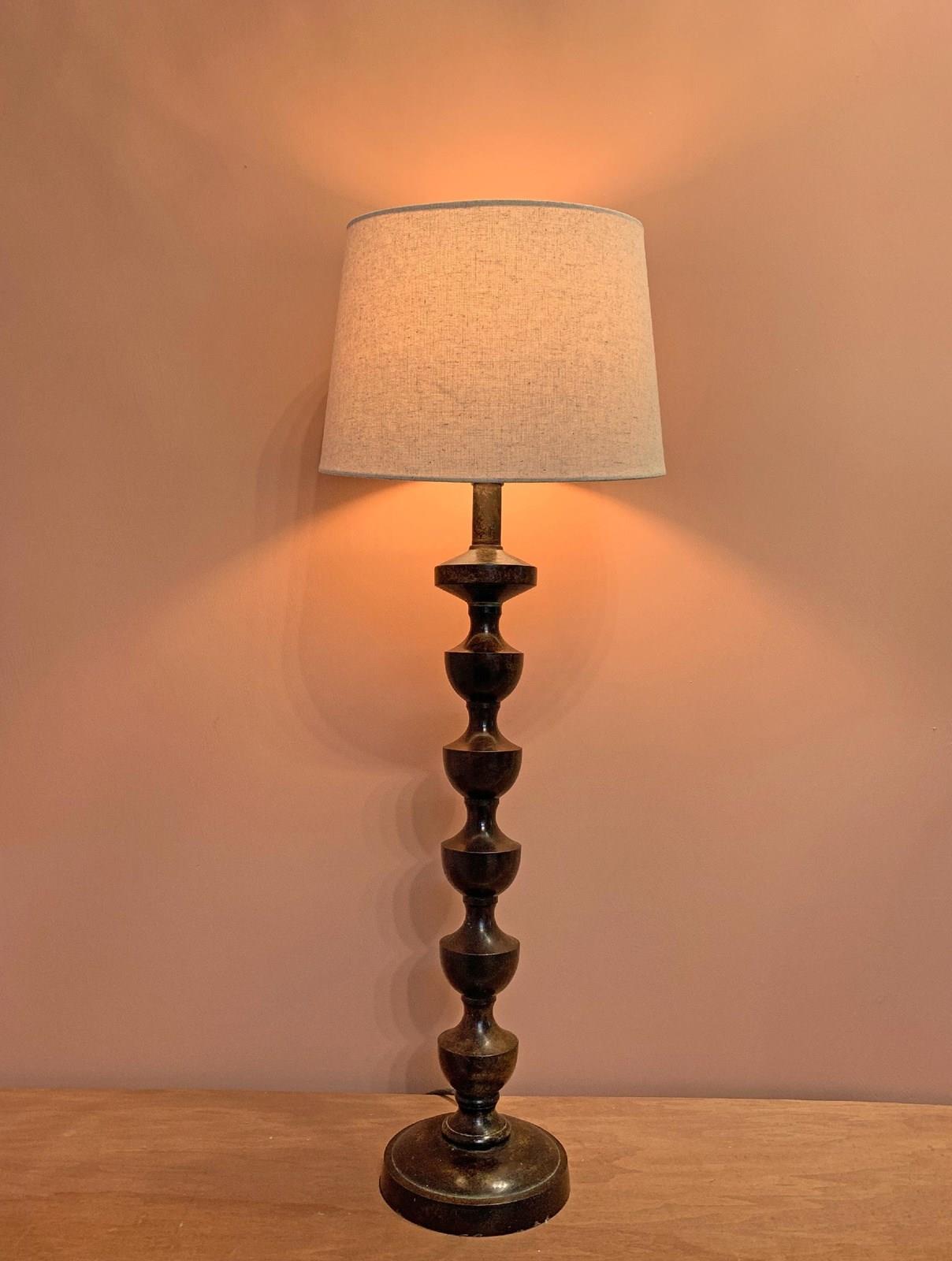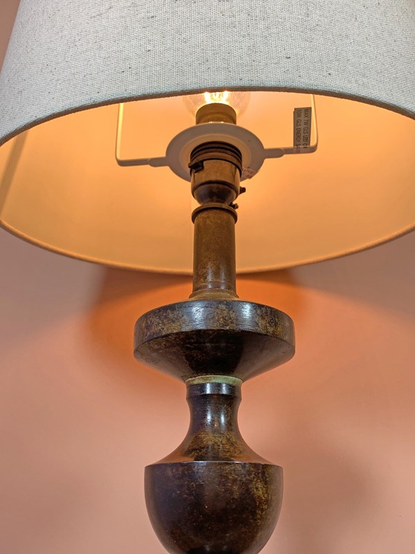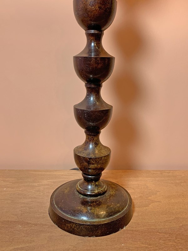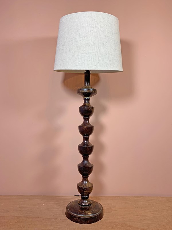 Vintage Wood Effect Bobbin Style Metal Table Lamp