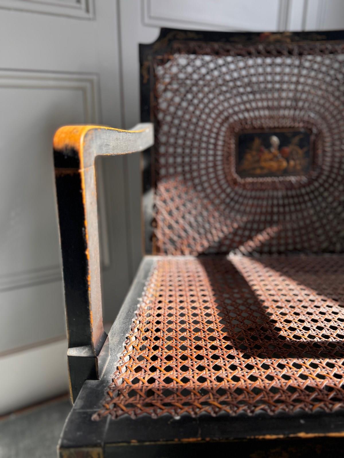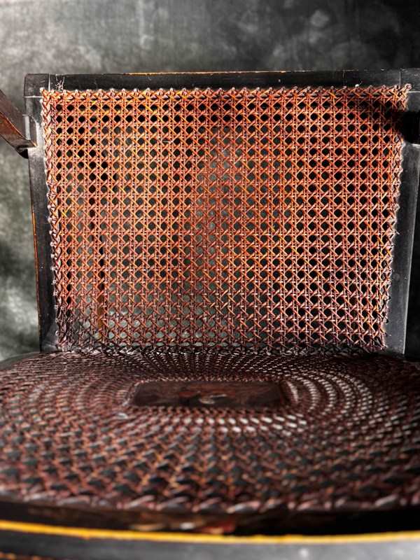 Worn in all the right places, giving it an original and authentic time worn patina, whilst retaining much of the decorative detailing and black background.