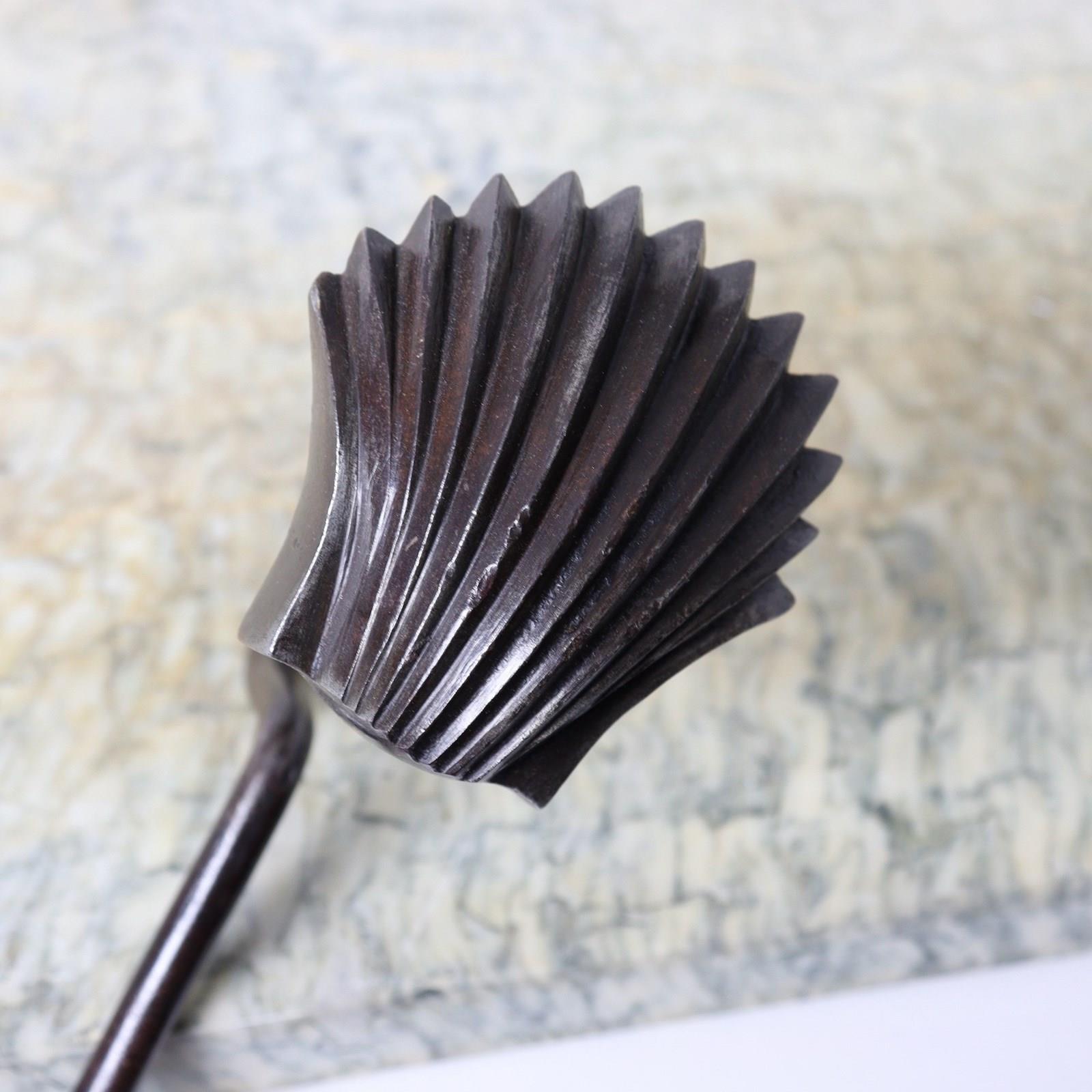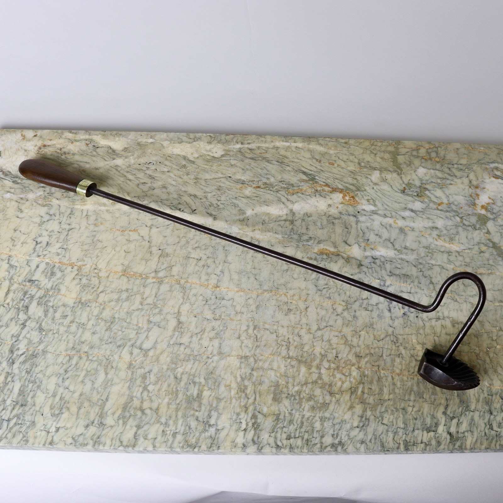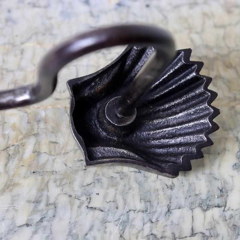 A late 19th century, cast iron, shell shaped croustade iron. Croustade is a French culinary term meaning a crust or pie crust of any type but this iron would have been used for making deep fried shell shapes as cases for canapés. Croustade irons are now becoming popular with chefs, and various modern examples are available, but it is rare to find a period example and this one dates from c.1890. It is made from cast iron and has an oak handle with a brass collar. It is in excellent condition.