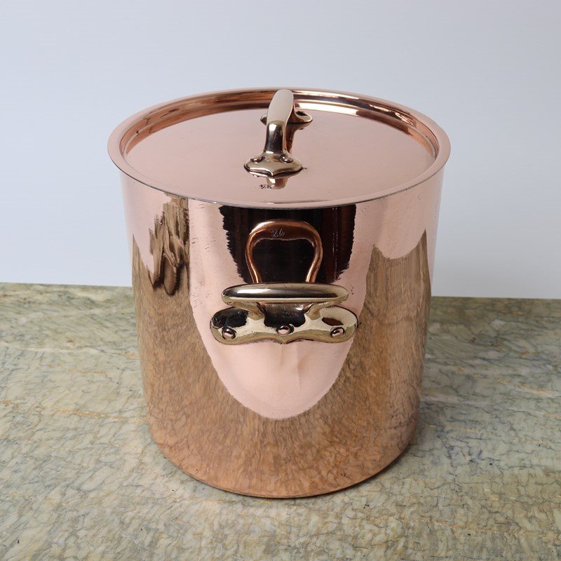 A good quality, 19th century, French copper stockpot. Both the lid and the pot are stamped with a number "24" which relates to the diameter of the pot in centimetres. This is well made, from a heavy gauge of copper, and it dates from c.1880. It is in excellent condition and the interior has been re-tinned so that it can be used.