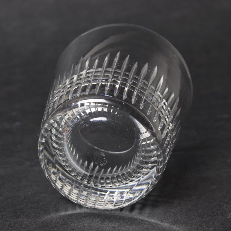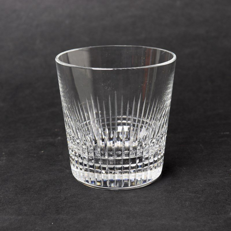 A lovely quality, French crystal ice bucket. This is marked “BACCARAT FRANCE” and it dates from c.1950. It has a geometric design to the lower half which consists of vertical spear shapes of varying lengths over cut with horizontal bands, forming small rectangles. This design is known as the “Nancy” pattern. It is in excellent condition.