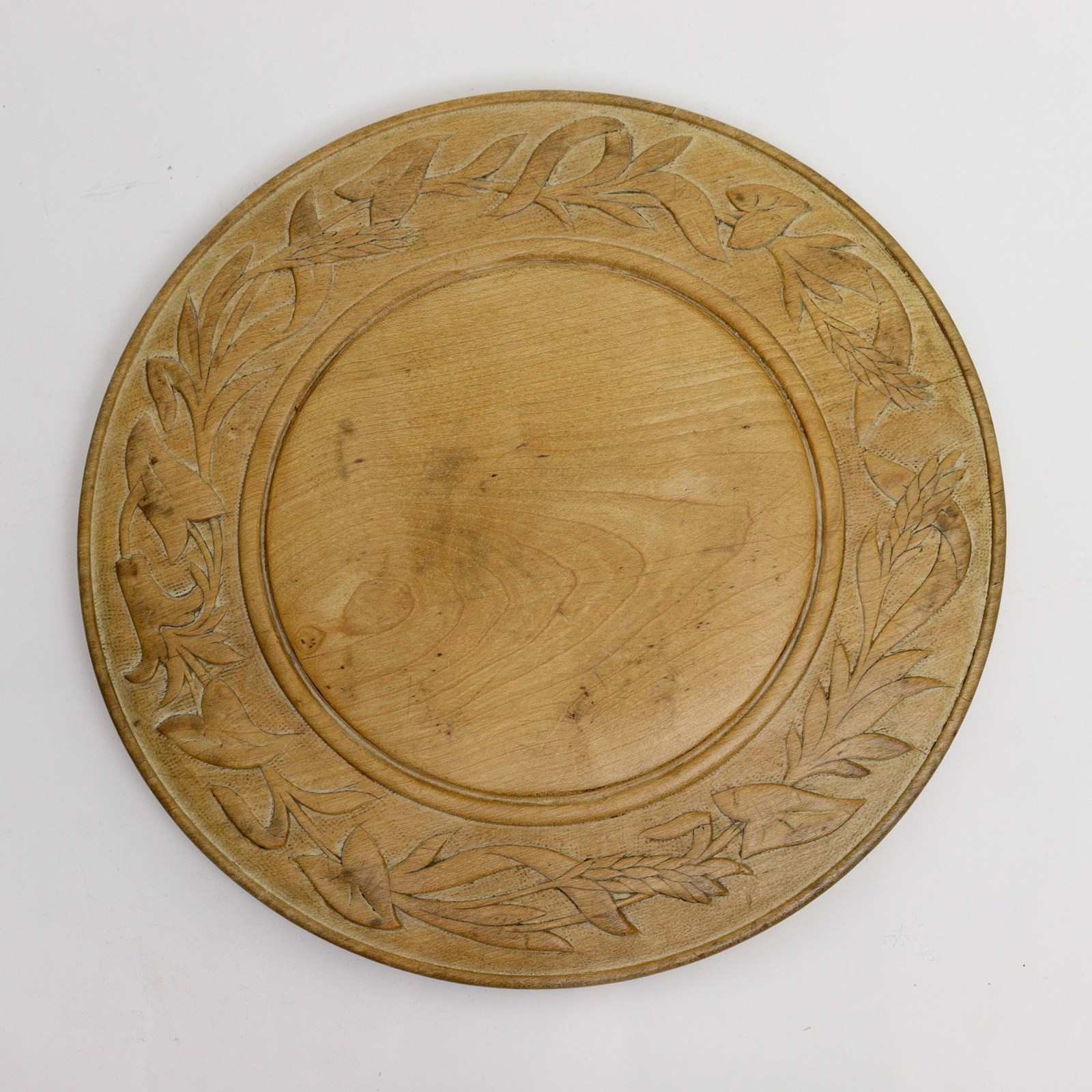 A nineteenth century, beechwood breadboard carved with convolvulus and wheat. This is English and it dates from c.1890. It is nicely carved with a convolvulus flower and leaves, entwined with wheat. The carving is good quality but it is quite shallow. There is very slight staining to the board but otherwise it is in very good condition.