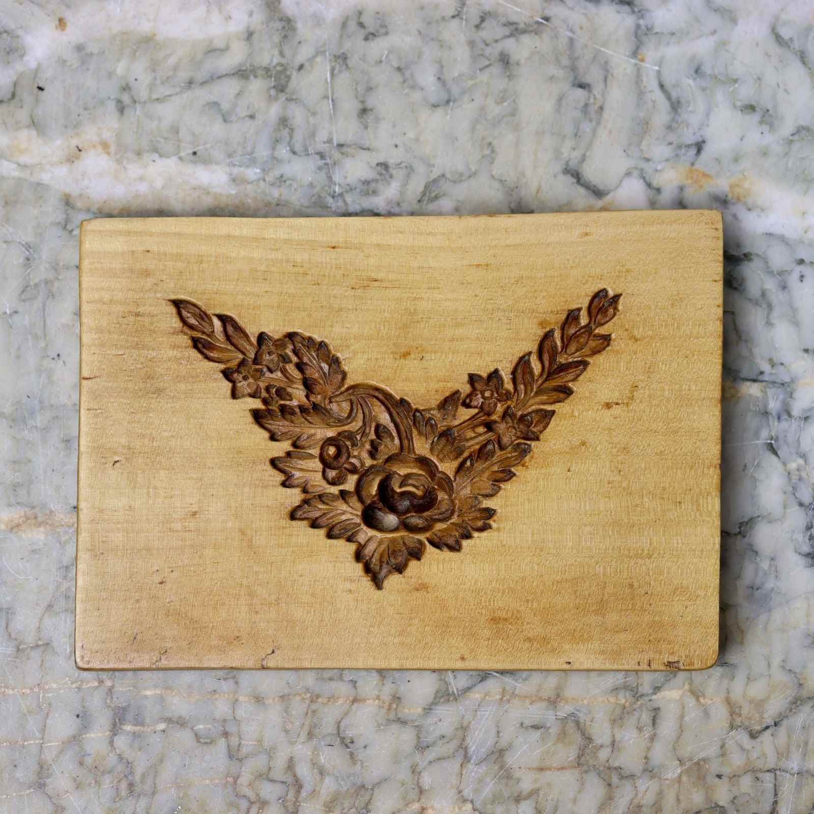 An early 19th century, boxwood sugar or gesso mould. This is beautifully carved, with a floral garland, and it dates from c.1820. The carving is very deep and well detailed and the wood has a lovely, pale, honey coloured patina. It is in excellent condition.