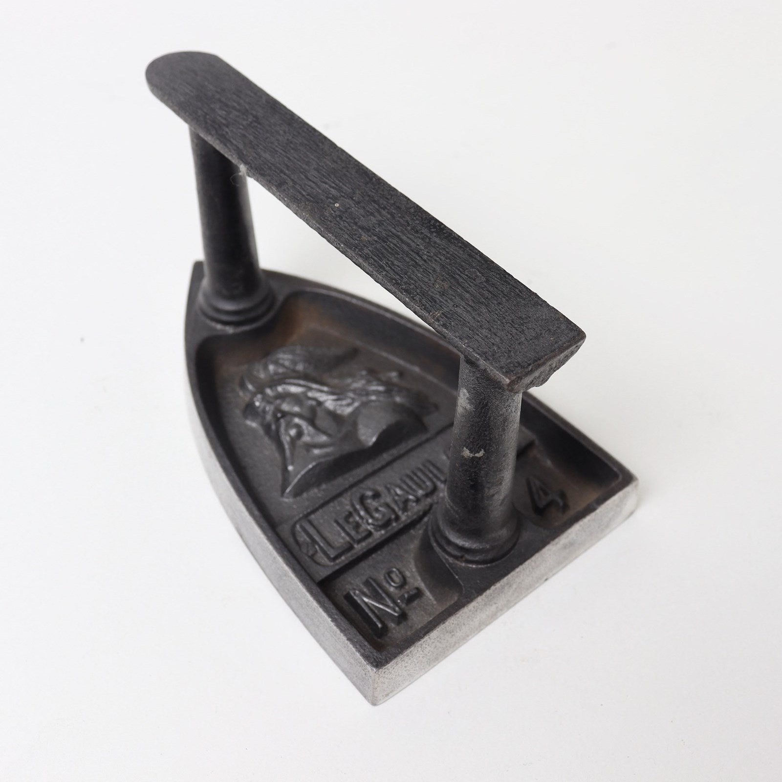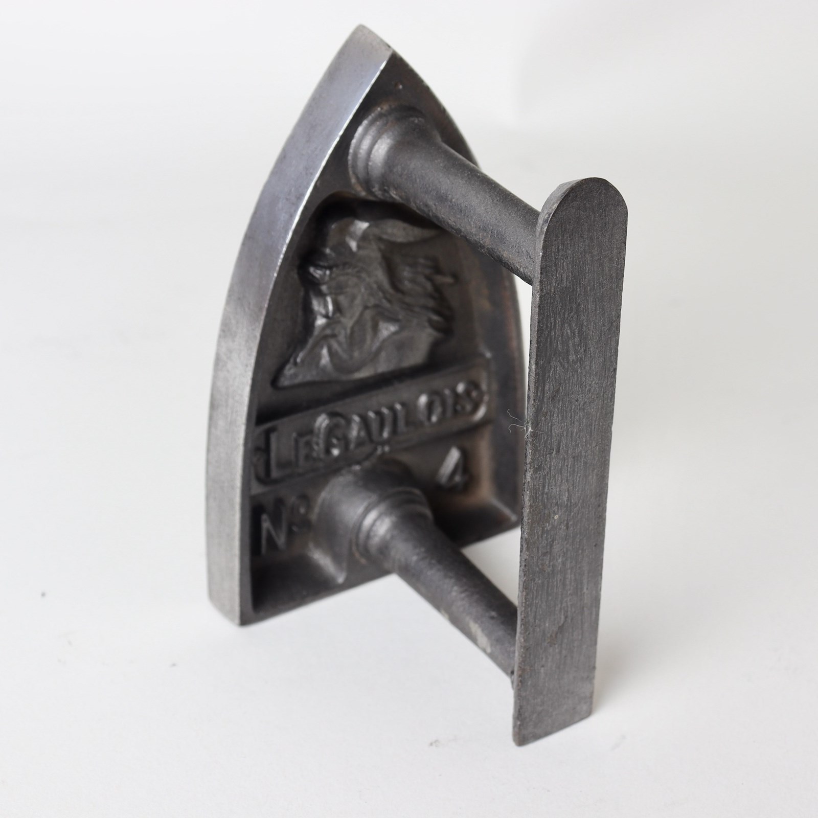 A nineteenth century, French, cast iron flat iron. This is marked, in the casting, “LE GAULOIS No4” and it dates from c.1880. It is also cast with a design depicting an ancient gaul wearing a winged helmet. It is in excellent condition.
