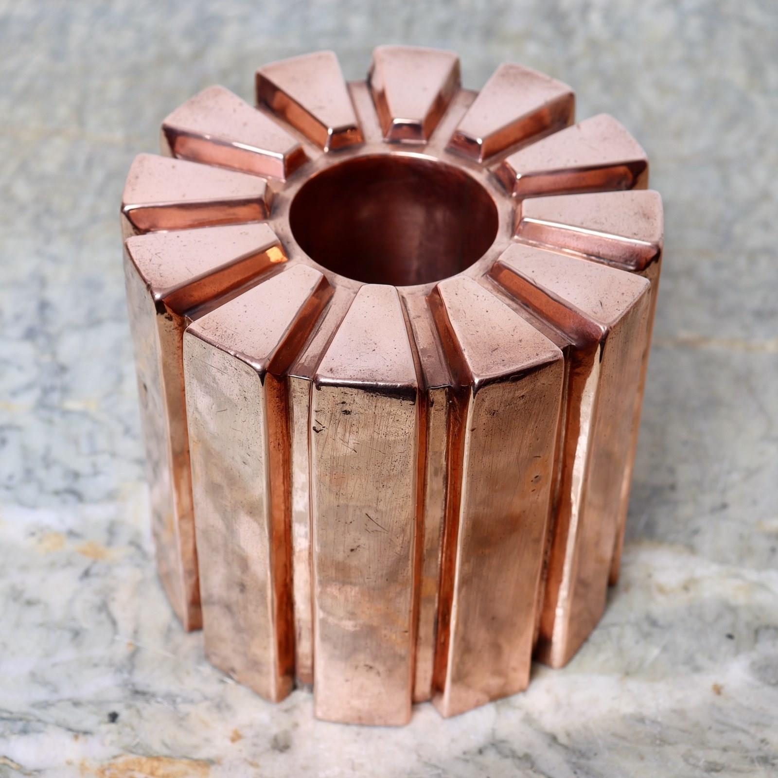 A pewter ice cream mould in the shape of a bell. This has no manufacturers marks but it is marked, in the casting, with the pattern number “404”. It is French and it dates from c.1880. It is in very good condition. The interior is in very good, bright usable condition and the exterior has quite a dark patina. Mid sized pewter ice cream moulds like this are not common.