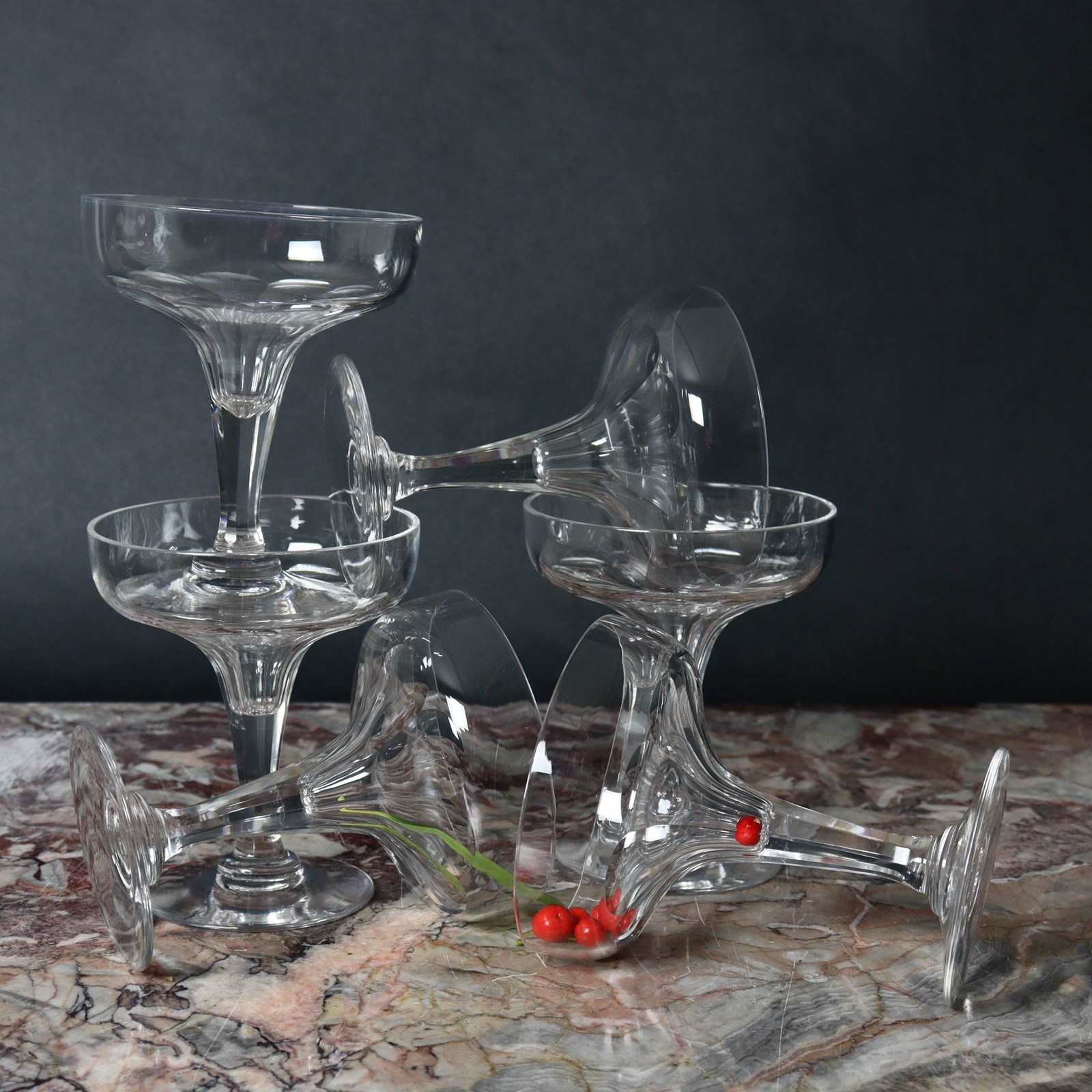 Crystal Champagne Coupes With Partially Hollow Stem