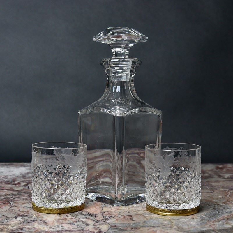 A heavy, French crystal whisky decanter by Baccarat. This fairly simple design is the Harcourt pattern. It is marked “BACCARAT FRANCE”, in a circular mark around the Baccarat logo, and it dates from c.1950. It is in excellent condition.