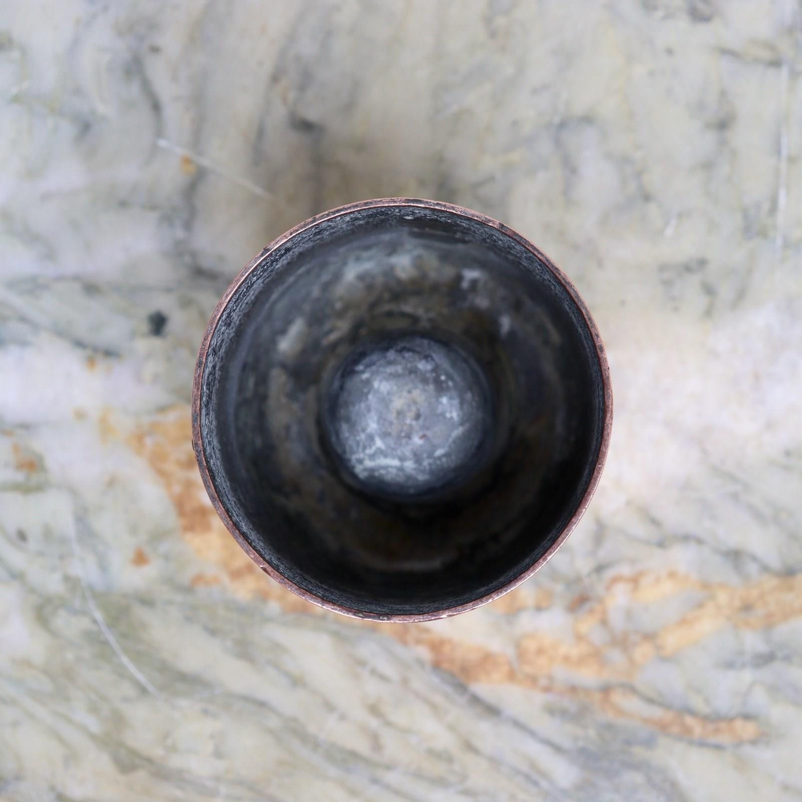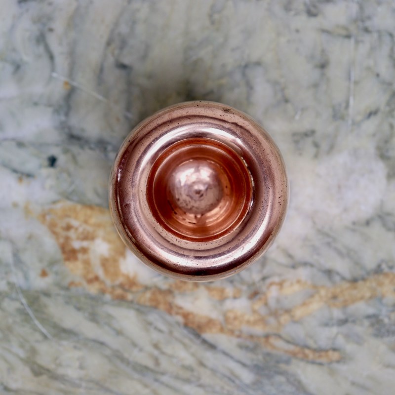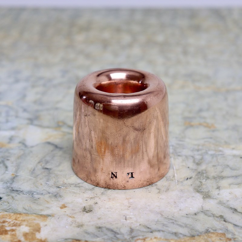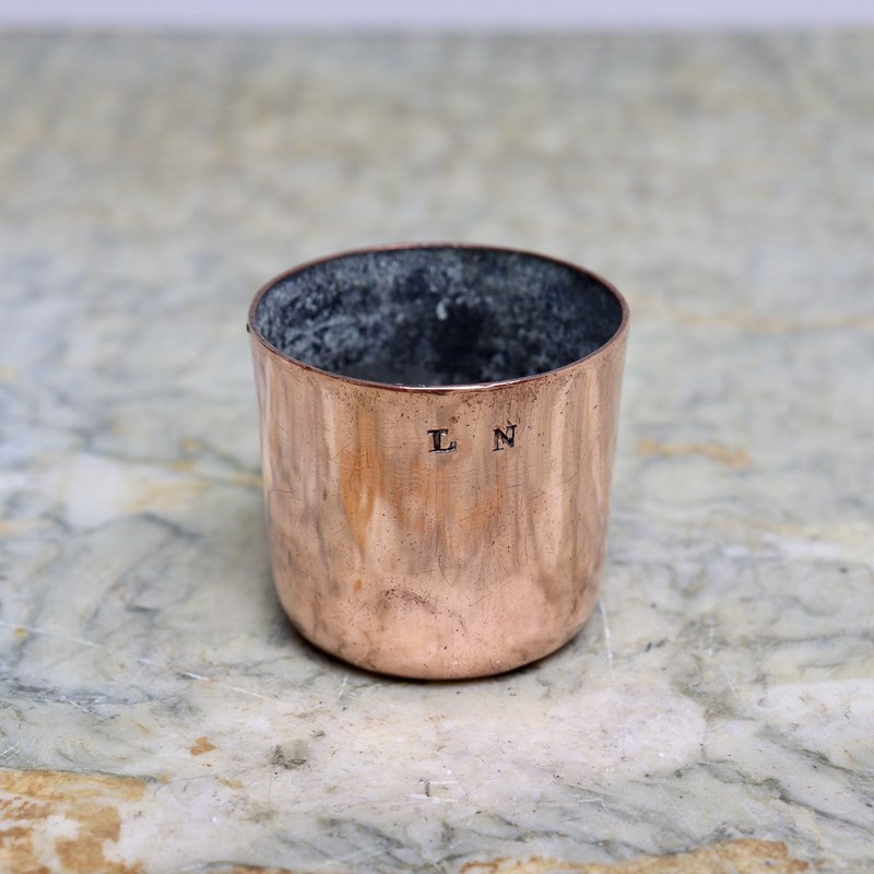 A miniature copper, deep timbal mould with a sunken top. This is English and it dates from c.1880. It is stamped with the initials “L.N”, which would be those of a previous owner. It is made from a heavy gauge of copper and it is in excellent condition. The tinning, to the interior, is worn.