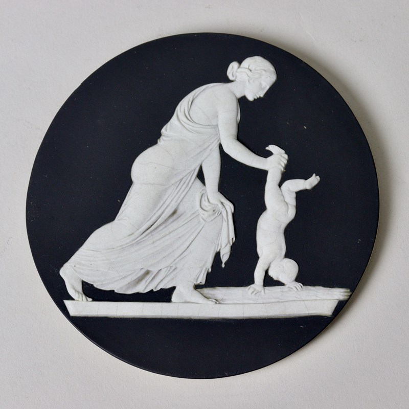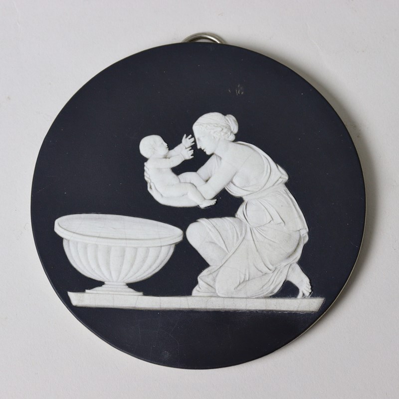 A fine pair of small, 18th century, Wedgwood, black jasper dip plaques depicting Thetis and Achilles. These are marked “WEDGWOOD” and they date from c.1790. Each plaque is dipped in the matt glaze on the reverse as well as the front. The scenes show Thetis and the anointing of her son Achilles. The reliefs are super quality and both plaques are in excellent condition.