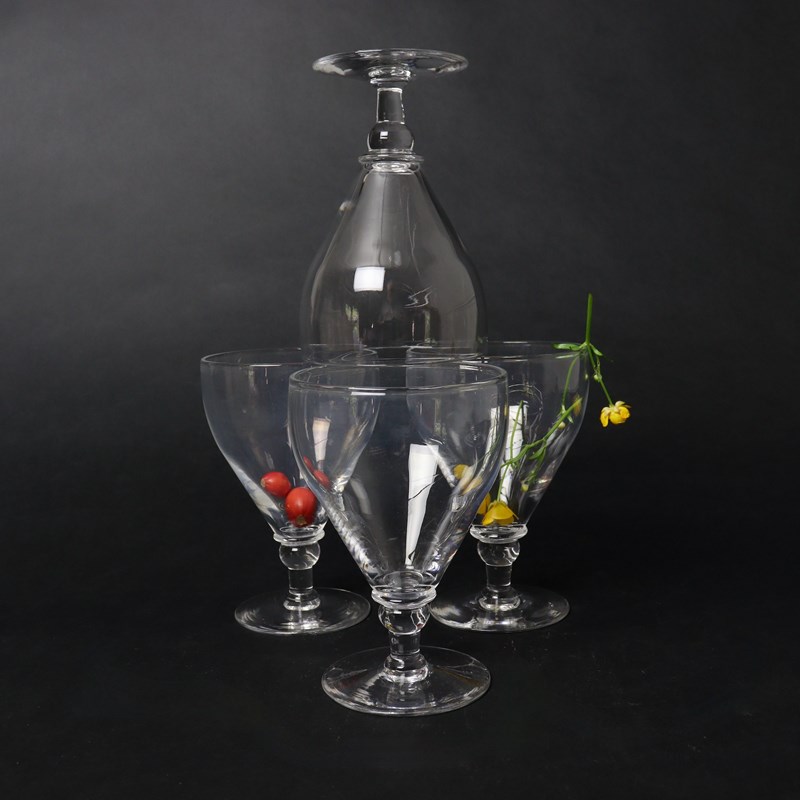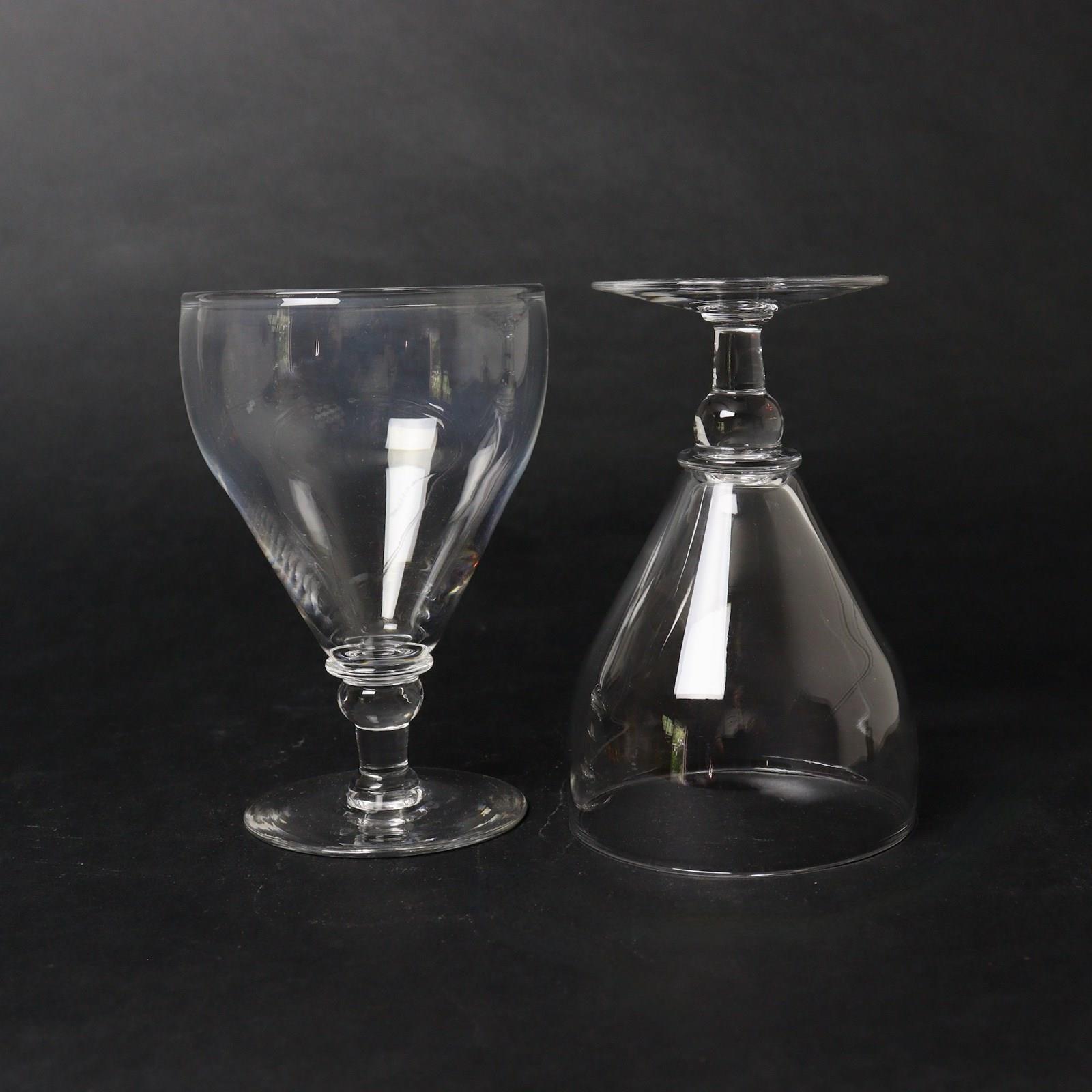Dimensions: Height 15.4cm. Diameter at the rim 10cm. Diameter at the foot 8.2cm. There are marginal differences in the sizes as they are hand blown.