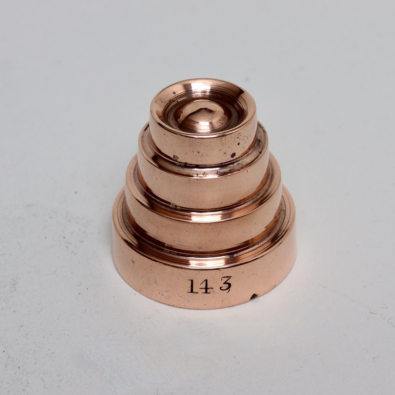 A 19th century, miniature copper mould of four tiered form with a tiny dome top. This is marked with a pattern number “143”. It is English and dates from c.1880. It is in excellent condition and the tinning, to the interior, although slightly worn, is still in usable condition.