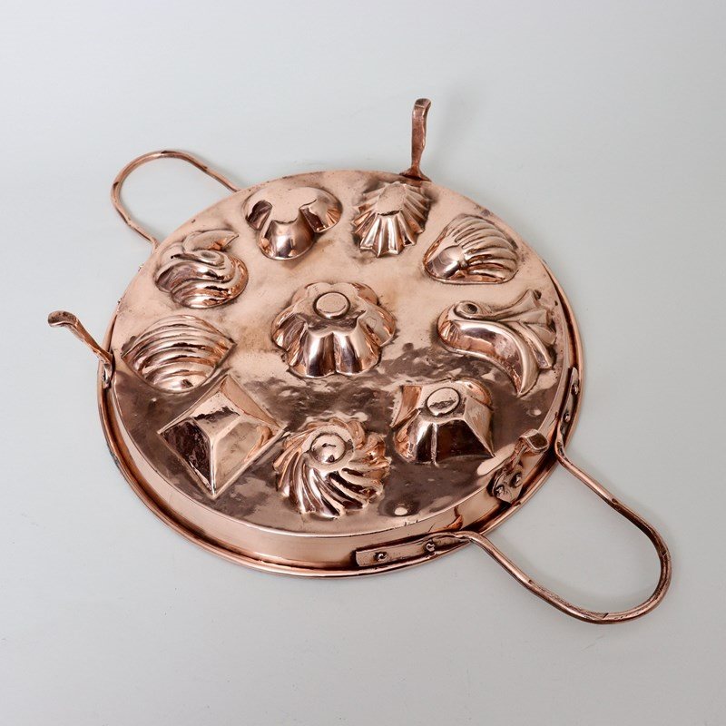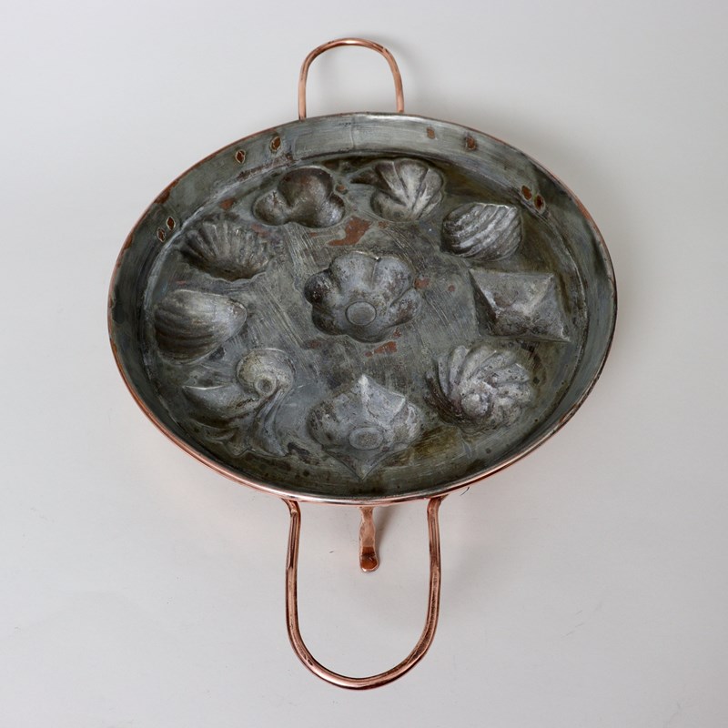 An unusual, late 19th century, French copper madelaine pan. Madelaine pans were used for cooking the small, shell shaped sponge cakes which, traditionally came from the Lorraine region of northeastern France but this example is quite different in that it has many different shapes in which to form the cakes. It is made from a substantial gauge of copper and dates from c.1890. It is in very good condition and, although the tinning is slightly worn, it could still be used.