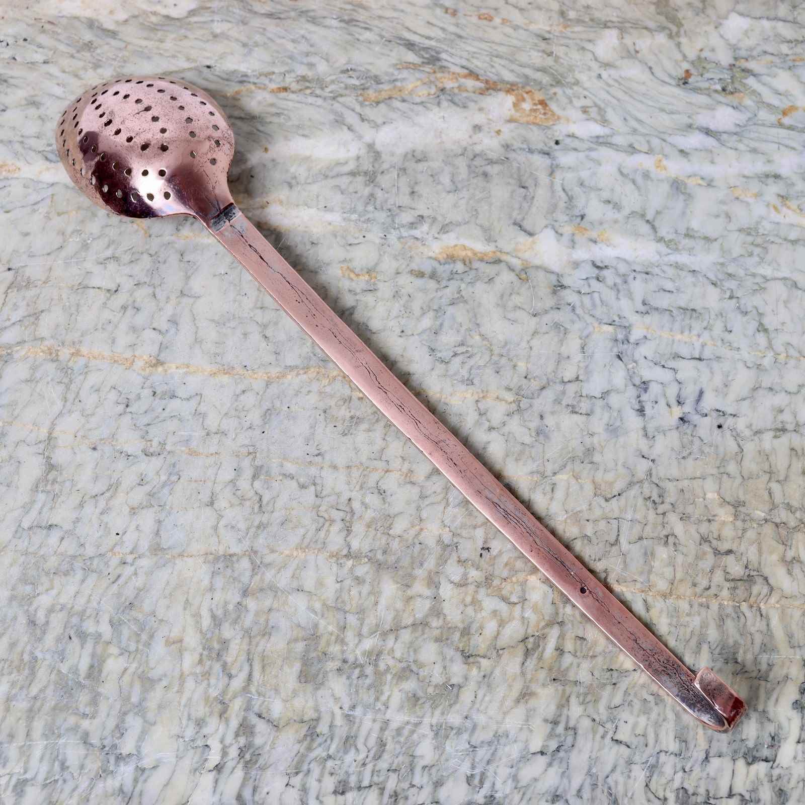 During that 35 years our business has evolved considerably as tastes and styles change. We started out dealing in kitchenalia and early English pottery but now our stock is quite different. Being keen cooks we still love kitchenalia, but much of our stock can still be used. One of our major lines is Antique copper kitchenware which we re-tin and turn out ready for use. Not all antique copper is good enough to make usable again so we travel thousands of miles to source copper that is both good quality and in good enough condition to re-instate to its’ former glory. Our clientele includes professional chefs, keen amateur cooks, food historians, stately homes and the entertainment industry.