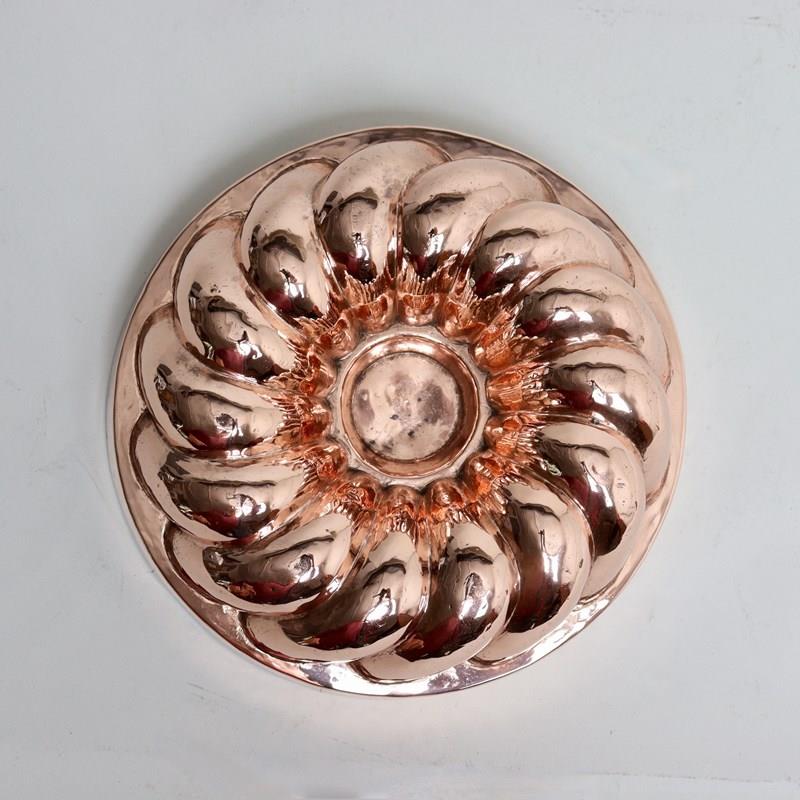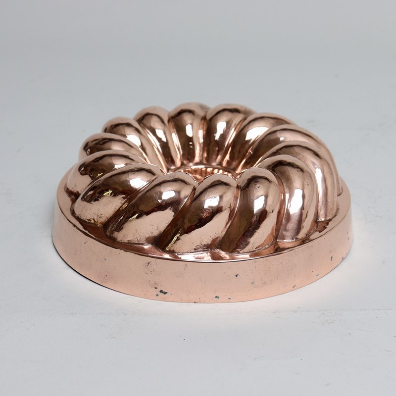 A nineteenth. Century, French copper mould of wrythen, fluted form. This dates from c.1880. When turned out the wrythen shape would form a ring but the centre would not be hollow. The mould is in good condition but the tinning, to the interior, is worn.