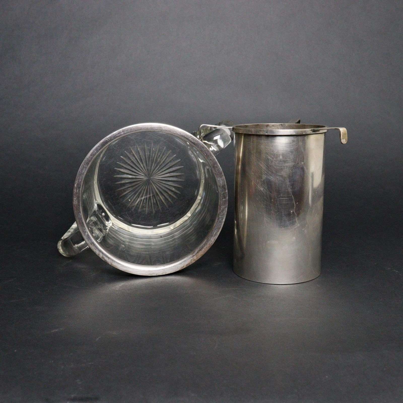A very heavy, French crystal wine cooler complete with liner. This is plain in style but it is quite elegant and it is made from a good quality, heavy crystal. The liner, which holds the bottle so that it doesn’t come into contact with the ice and get wet, is chrome plated as is the rim to the cooler. There are some marks to the metal but I am not familiar with these. It dates from c.1930 and is in excellent condition.