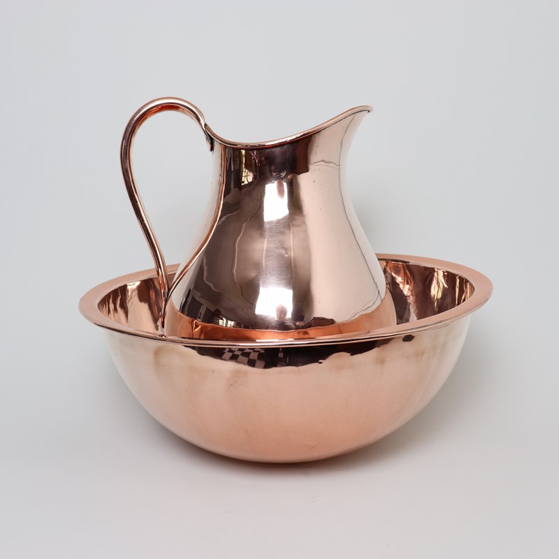Large, English Copper Wash Bowl And Jug