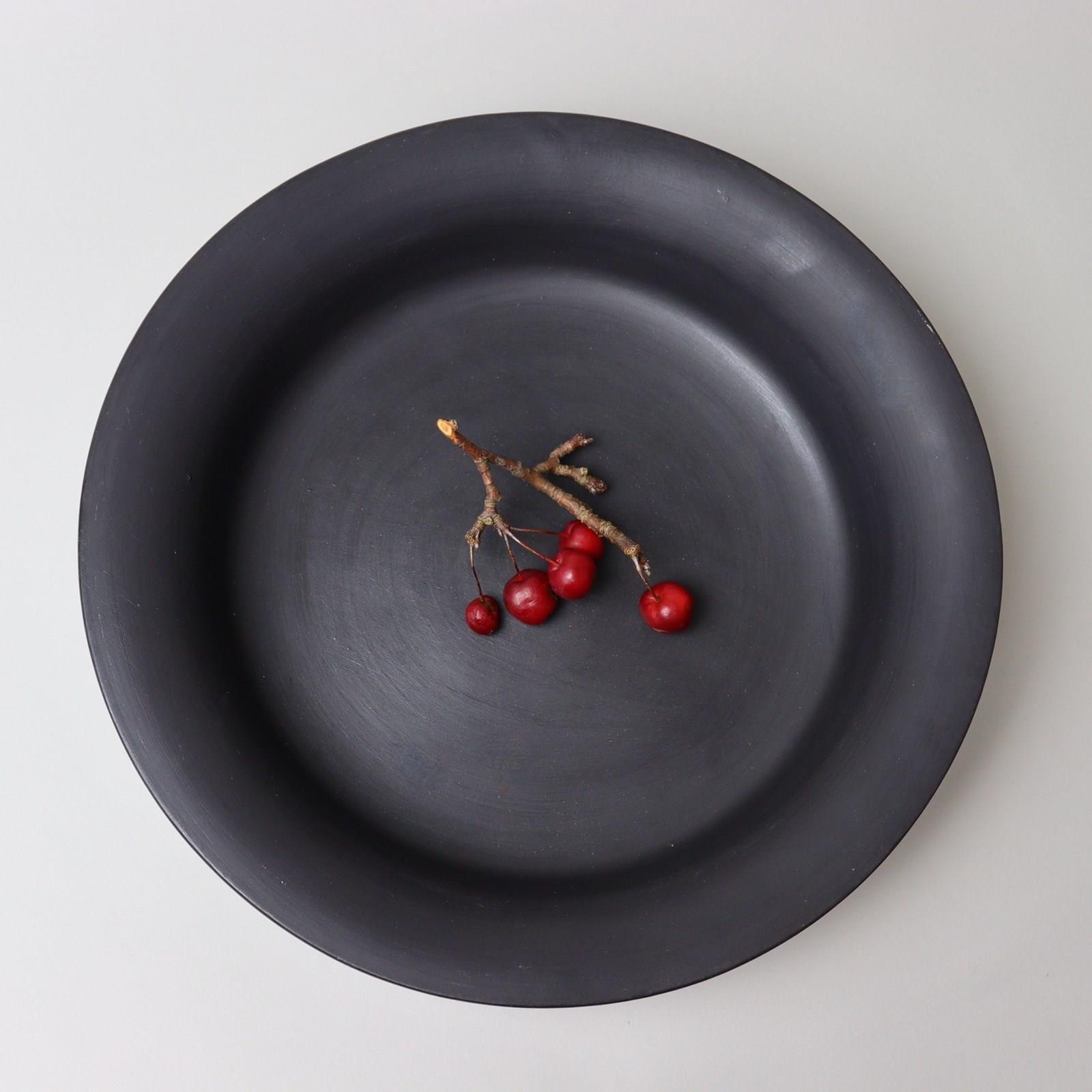 A large, Wedgwood black basalt bowl. This is marked ”WEDGWOOD” and it dates from c.1880. There is a further impressed mark which is quite indistinct, but is probably a workmans’ mark. The bowl is a lovely shape, with a wide, flared rim. It is perfectly plain, with no decoration, and the basalt is well potted. It is in excellent condition.