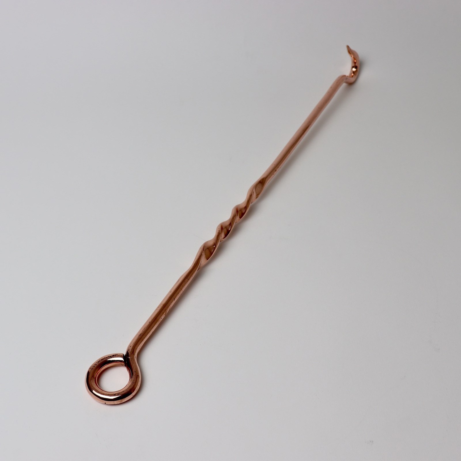 An unusually long, 19th century, copper hook. This is made from a very heavy gauge of copper and it dates from c.1860. It has a twisted central section and a large loop end by which it would hang above the range or in an open fire grate. It is in excellent condition.