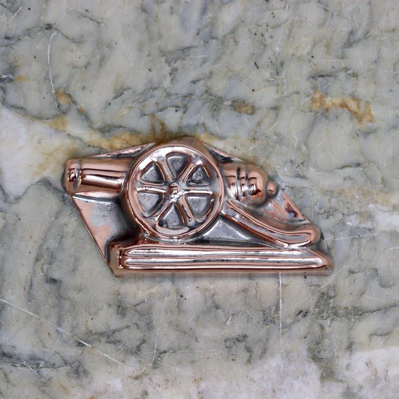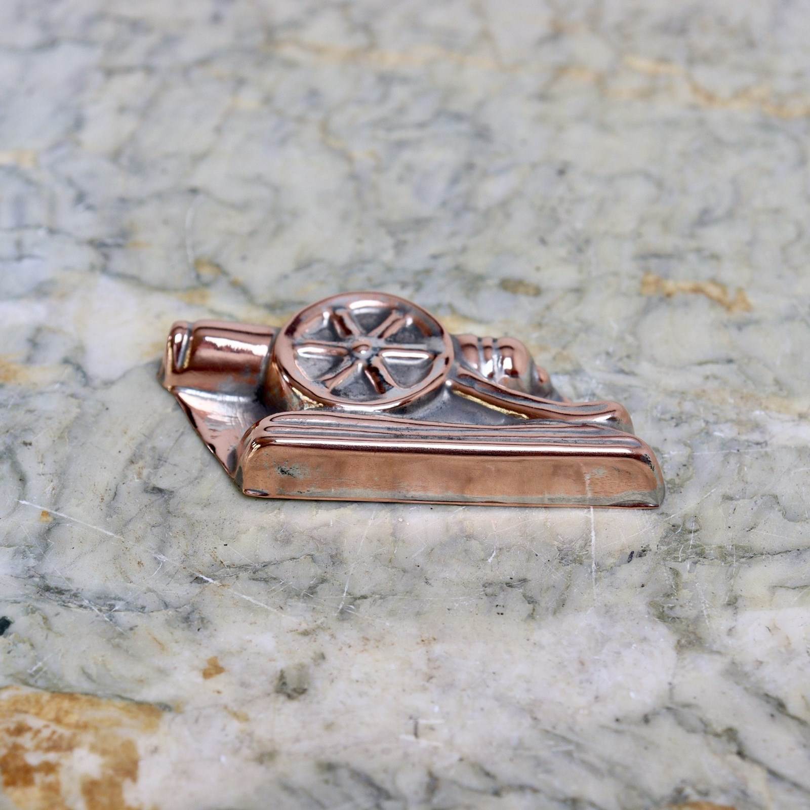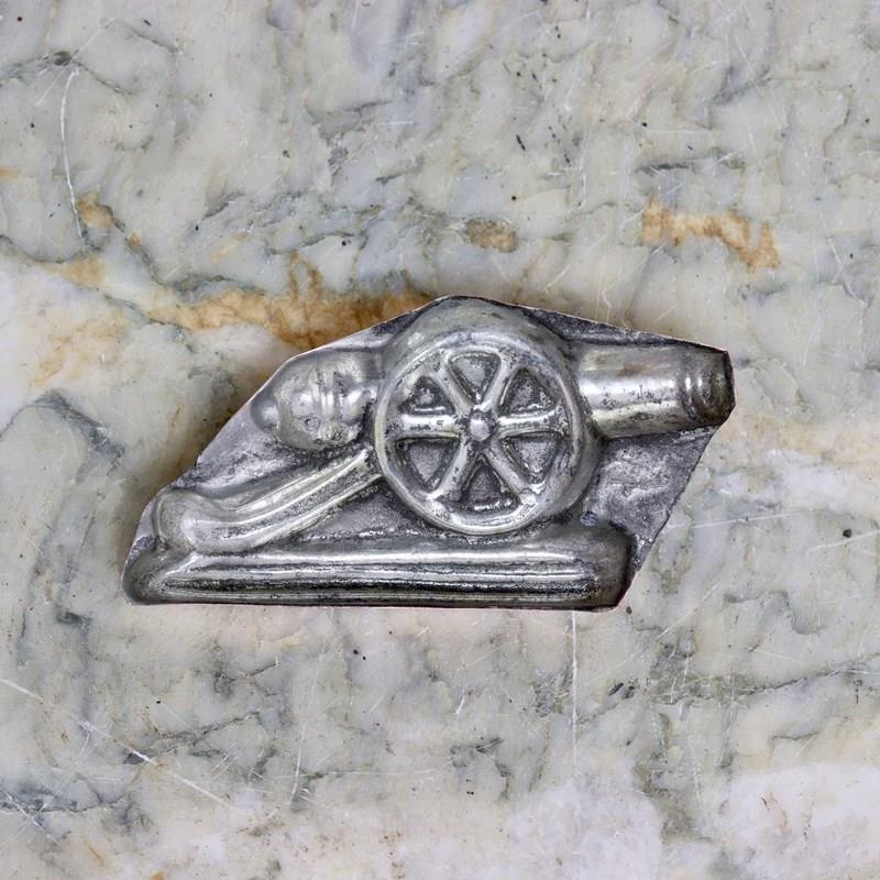 A rare, miniature copper mould in the shape of a cannon. This is English and it dates from c.1920. It is made from a light gauge of copper but there is very good detail in the design. Originally it would have been tinned all over but the tinning has been removed from the exterior revealing the copper beneath. The mould is in very good condition and the tinning, to the interior, is still in very good, bright, usable condition.