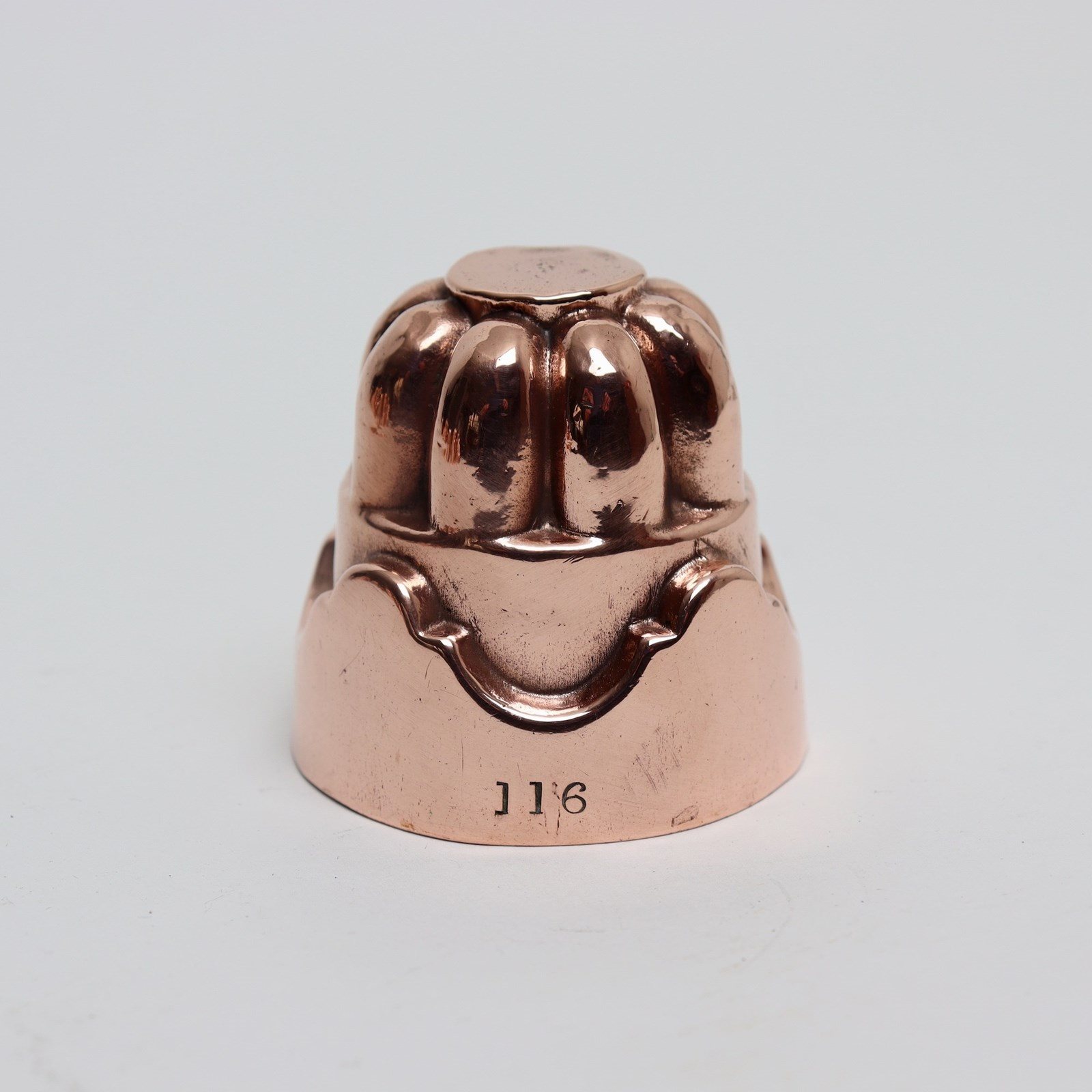 A 19th century, miniature copper mould. This is stamped with a pattern number “116”. It is English and it dates from c.1880. The design consists of fluted columns to the top half above a scalloped base. It is in very good condition but the tinning, to the interior, is quite worn.