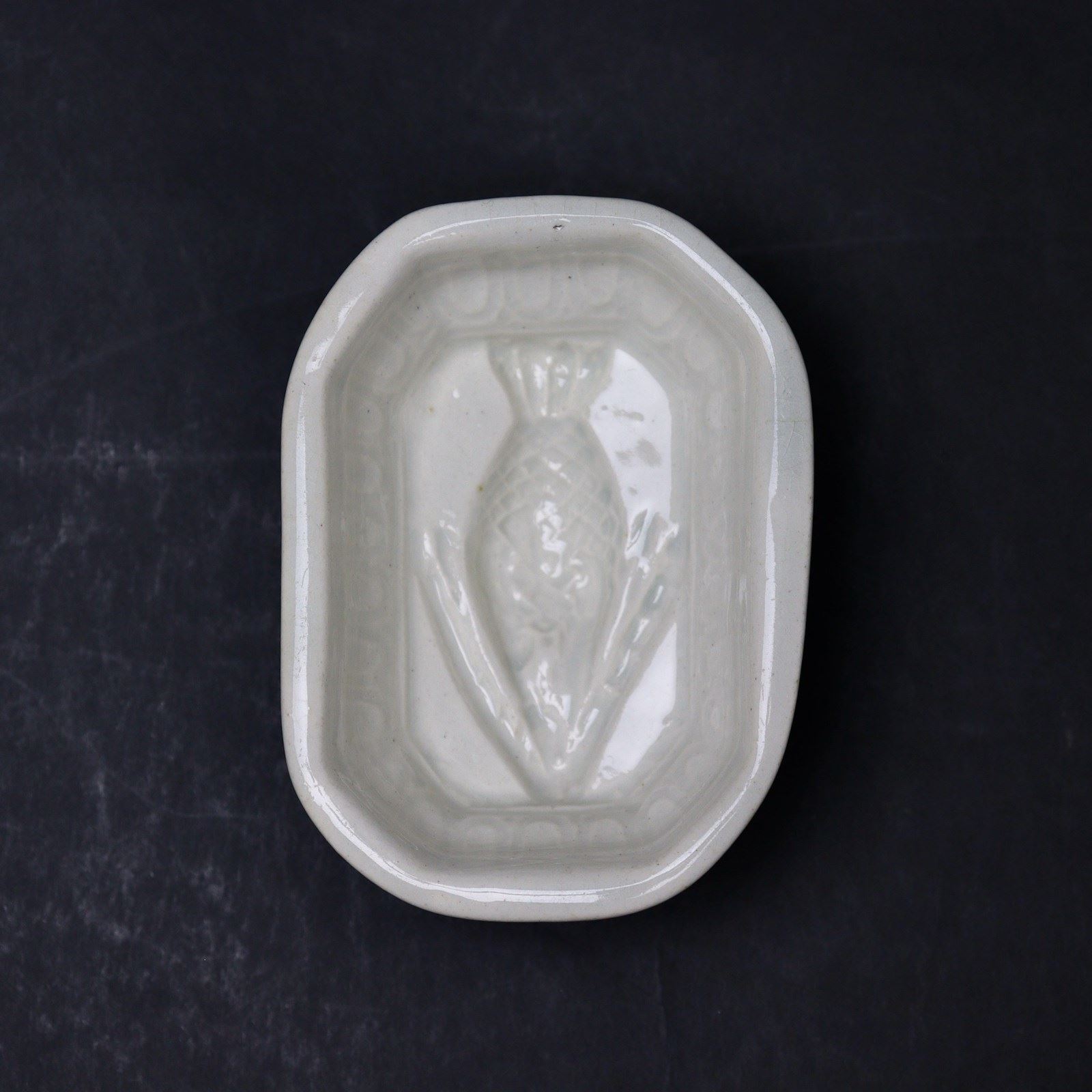 A miniature ironstone pottery mould with a pineapple to the base. This is English and it dates from c.1860. The pineapple is quite well detailed and would turn out well. The mould is in excellent condition.